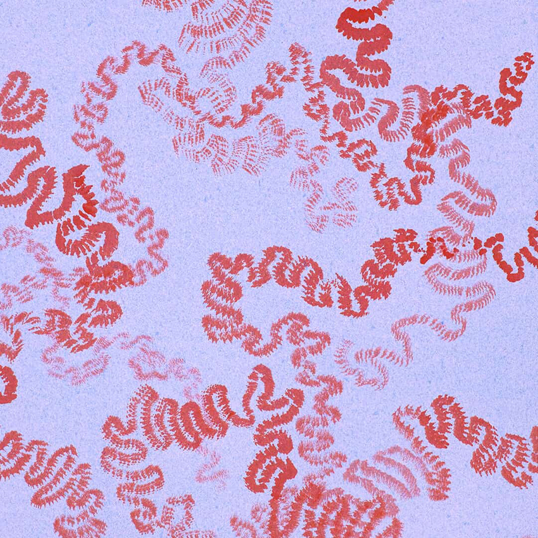 幾重にも蛇行する無数の線。《Winding》シリーズは、カタツムリが餌を食べながら移動した痕跡(食痕)がきっかけとなった、運動の連なりです。