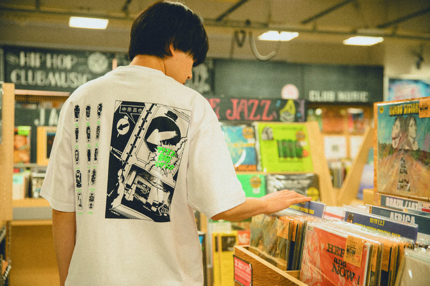 作家 / 音楽家・中原昌也の音楽作品や書籍のアートワーク / 装丁を、宇川直宏、河村康輔、坂本慎太郎、SKATETHING、高橋ヨシキの5人がリデザイン / コラージュした「中原昌也アートワーク Remix Tシャツコレクション」を「Sow Sweet Publishing, inc.」がリリース。オンライン・ストアと「HMV」「ディスクユニオン」の店舗およびオンライン・ストアにて1月31日(土)23:59までの期間限定で受注販売が実施されます。東京・渋谷 HMV record shop 渋谷にて寺沢美遊が撮影したルックのモデルは小山田米呂。