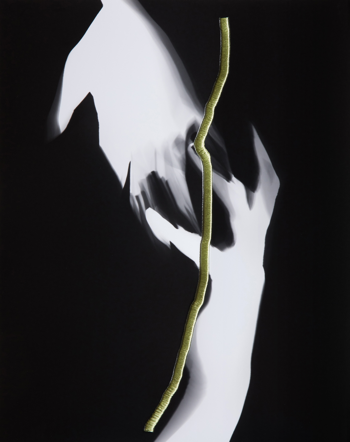 一方でフォトグラムと刺繍のシリーズは、その行為を圧縮したようなものだ。