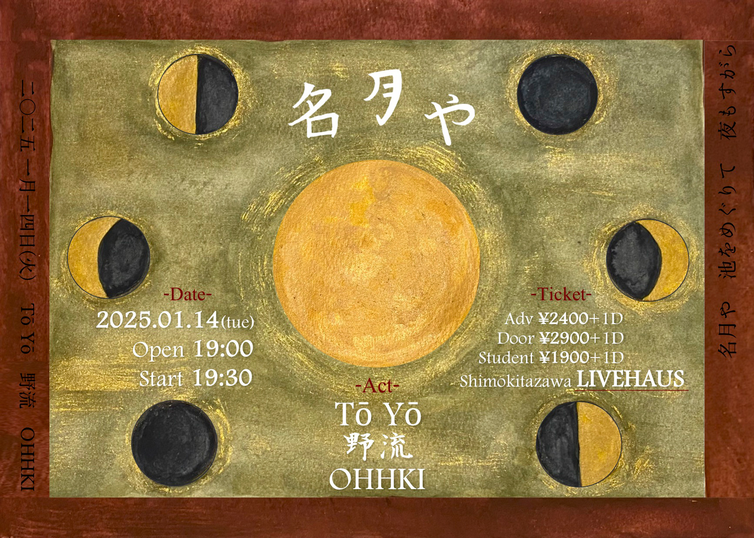 4月に初回が開催され、Living Rita、Ai Kakihira、Wuinguinが出演して好評を博したライヴ・イベント「名月や」の第2回が、2025年1月14日(火)に東京・下北沢 LIVE HAUSにて開催されます。