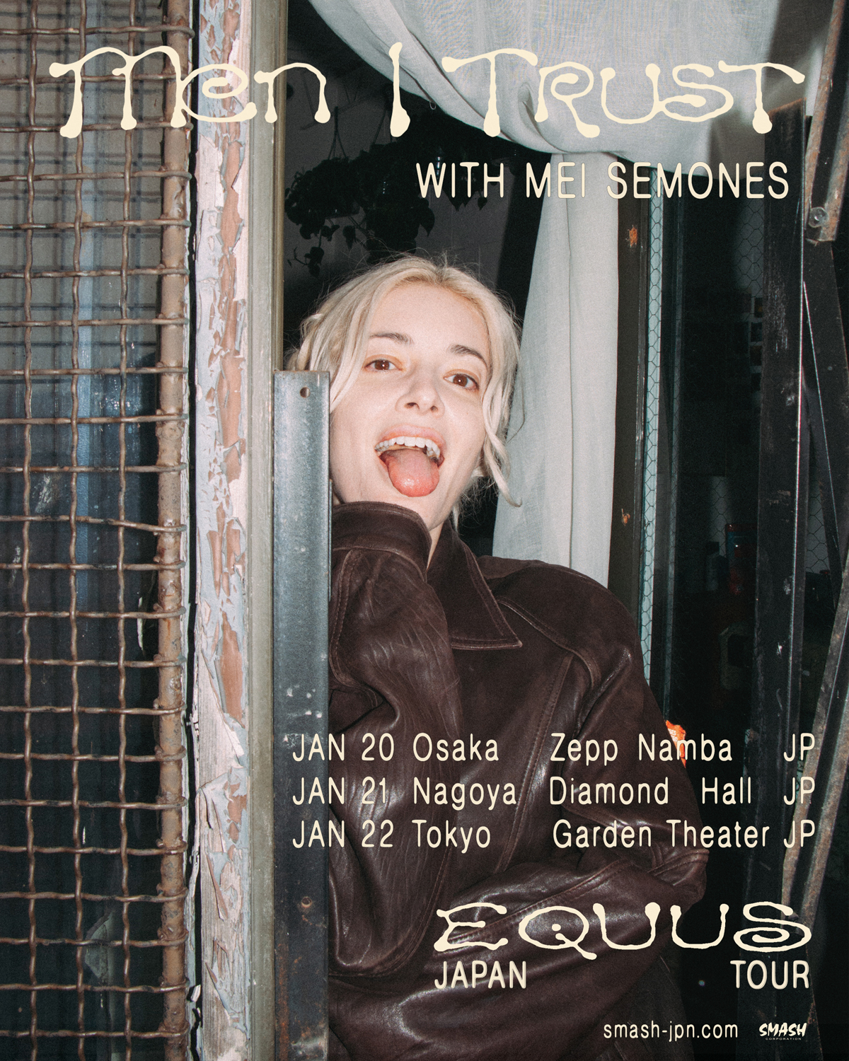 3月に『Equus Asinus』、5月には早くも『Equus Caballus』を発表し、短いスパンでのフル・アルバムのリリースが話題となっているカナダ・モントリオール / ケベックのMEN I TRUSTが、両作を携えて2026年1月に来日。EP『Kabutomushi』(2024)のヒットを経て今年5月に初フル・アルバム『Animaru』(Bayonet Records)を発表した米ニューヨーク拠点のシンガー / コンポーザー・Mei Semonesと共に東名阪のジャパン・ツアーを開催します。