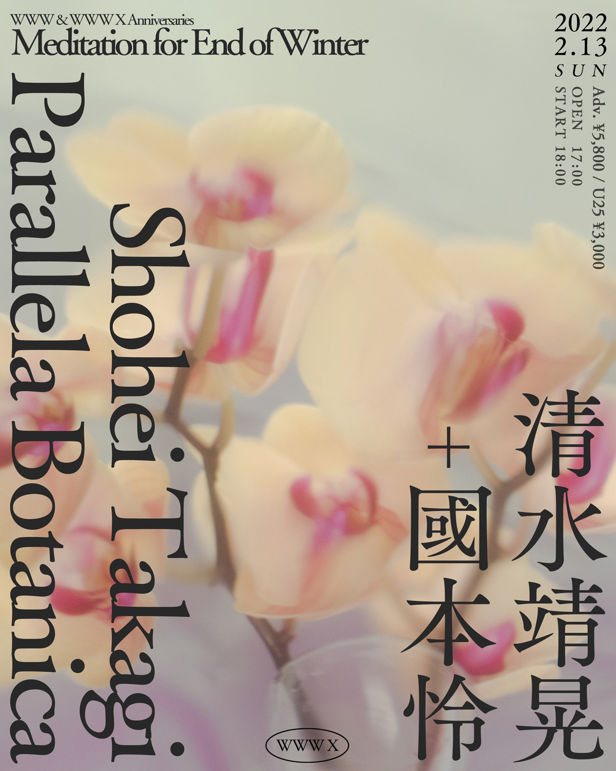 2022年2月13日(日)に東京・渋谷 WWW Xにて同会場およびWWWのアニヴァーサリー企画の一環として開催されるライヴ・イベント「WWW & WWW X Anniversaries -Meditation for End of Winter-」に、清水靖晃 + 國本 怜、Shohei Takagi Parallela Botanicaが出演。