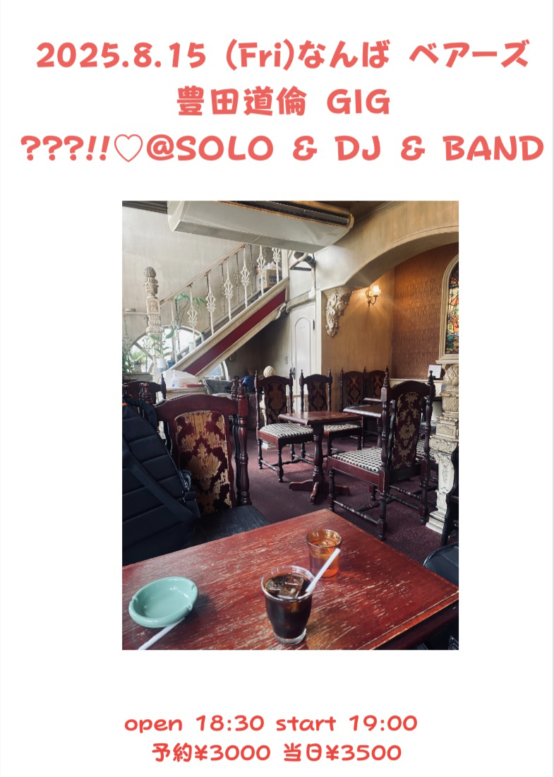 また8月15日(金)には、ソロ / DJ / バンド編成での3部構成ギグ「???!!♡@SOLO & DJ & BAND」を大阪・難波 BEARSにて開催。バンド編成はみのようへい(b)、岡村基紀(g)、岡山健二(dr)、江崎將史(tp)とのパフォーマンスが予定されています。