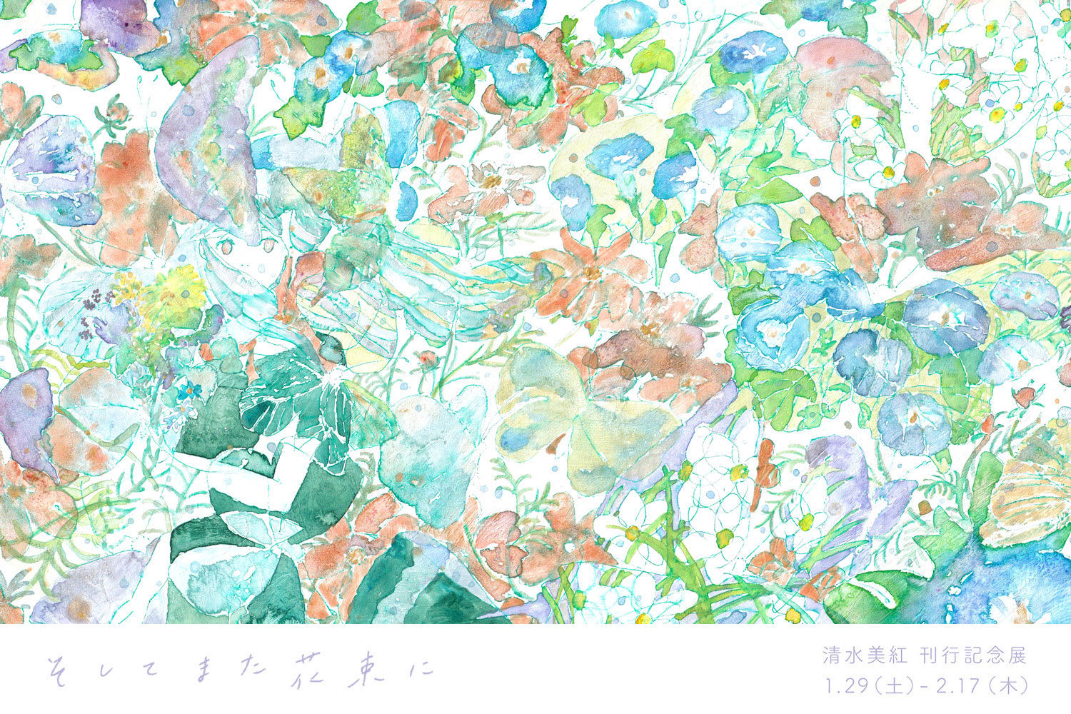 昨年2月に個展「満月と新月」を東京・学芸大学 cociel cobaで開催した画家・清水美紅が、1年ぶりのソロ・エキシビション「そしてまた花束に」を1月29日(土)から2月17日(木)まで東京・学芸大学の書店「SUNNY BOY BOOKS」内で開催。同展に合わせてSUNNY BOY BOOKSは、清水の絵と文章による本『そしてまた花束に』を刊行します。