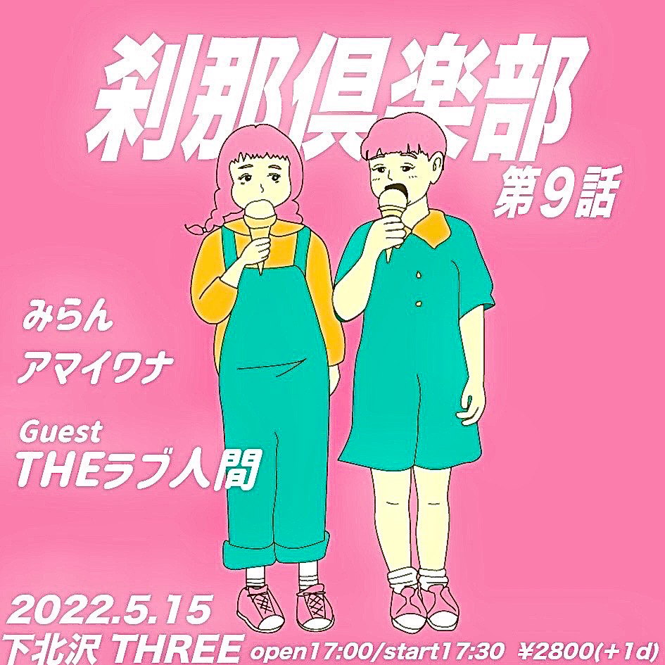 3月に発表したフル・アルバム『Ducky』を携えてのツアー「”Ducky” Release Tour きみがあたらしいキスをしたから」を開催中のみらんと、同じく3月に80sアイドル雑誌研究書『あくまでも、ファンタジー』を刊行した女優 / モデル / トラックメイカー・アマイワナが、共同で企画するライヴ・イベント「刹那倶楽部」の“第9話”を5月15日(日)に東京・下北沢 THREEにて開催。