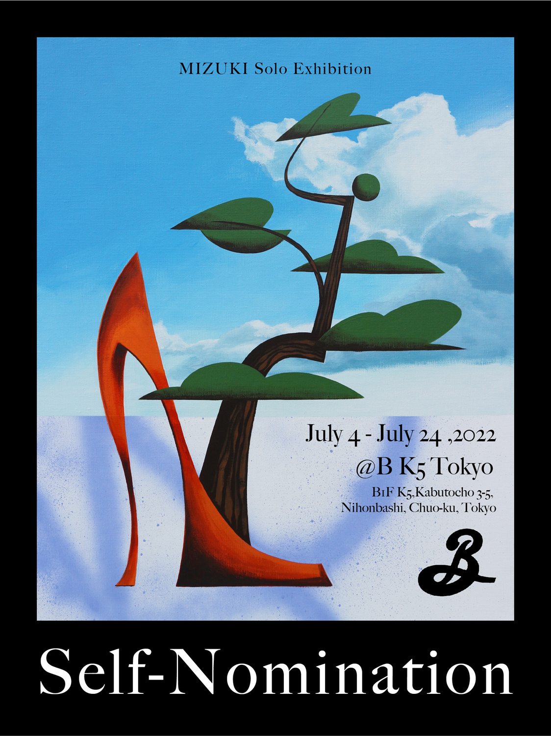 昨年10月に個展「DOWNSIDE UP」を東京・神宮前 TRUNK (HOTEL)にて開催したペインター・MIZUKIが、9ヶ月ぶりのソロ・エキシビション「Self-Nomination」を東京・日本橋 B by the Brooklyn Breweryにて7月4日(月)から24日(日)まで開催。