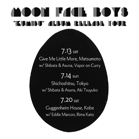 2000年代に東京で活動し、テニスコーツ主宰レーベル「majikick」からの作品発表でも知られたエクスペリメンタル・ポップ・デュオMY PAL FOOT FOOT。その一員・竹下 慶 aka mono tone boyが京都移住後の2010年よりソロ・プロジェクトとしてスタートさせ、松本一晃(アラヨッツ, ann ihsa ほか)、カメイナホコ(ウリチパン郡, 三田村管打団?, トンチトリオ ほか)を得てトリオ編成へと進化したMOON FACE BOYSが、6月に初のオリジナル・フル・アルバム『クミス』をリリース。7月13日(土)より、同作を携えてのリリース・ツアーがスタートします。