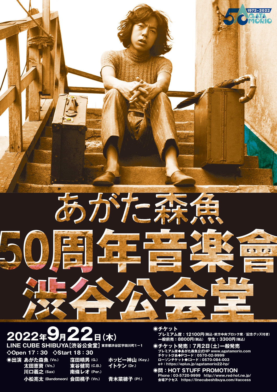 これまでに50タイトル以上のアルバムを発表し、73歳の現在もなお精力的に活動するあがた森魚が、50万枚以上のセールスを記録した大ヒット作『赤色エレジー』(1972)でのデビューから今年で50周年。これ記念したホール・コンサート「50周年音楽會 渋谷公会堂」が9月22日(木)に東京・渋谷 LINE CUBE SHIBUYA(渋谷公会堂)にて開催されます。