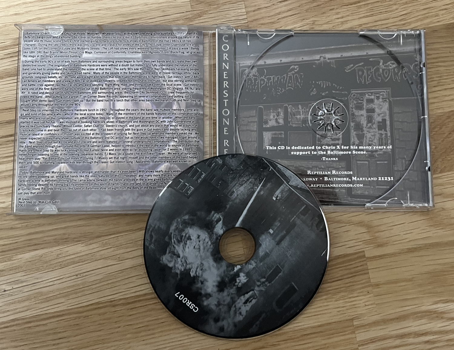 M 「BALTIMOREはCornerstone Recordsがあったのがでかいですよね。このコンピ盤、バックインレイの写真がレコード屋(Reptilian Records)なんですよ」