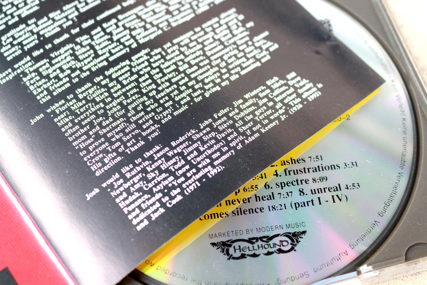 ちょっとそのアルバムのインサートに掲載されたHartさんのサンクス・リストを見てくれよ……。All the guys in Internal Void, Penance, Asylum (now Unorthodox) and Sheer Terror