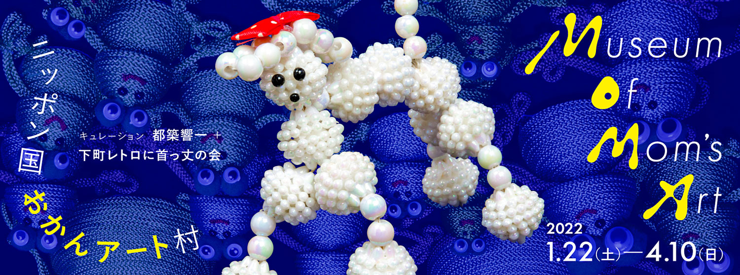 毛糸、ビーズ、ボタン、軍手、端布、空き箱など、身近で安価な素材や廃棄せず保管した不要品を材料に、“母 = おかん”が作る手芸作品、通称“おかんアート”。その大規模エキシビション「Museum of Mom’s Art ニッポン国おかんアート村」が2022年1月22日(土)から4月10日(日)まで東京・渋谷 東京都渋谷公園通りギャラリーにて開催されます。