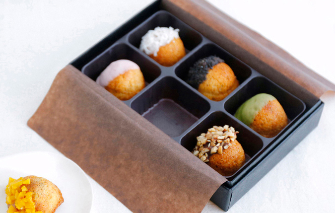 3個入り 2,000円 + 税 / 6個入り 3,200円 + 税 | 抹茶 / 苺 / マンゴー / チョコと黒ごま / 抹茶と白ごま / レモンとココナッツ | 日持ち 4日