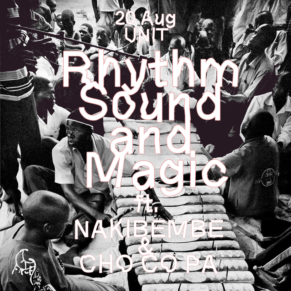 同公演には、昨年「Nyege Nyege Tapes」よりセルフタイトルのフル・アルバムを発表して話題となったNAKIBEMBE EMBAIRE GROUPに加え、南米音楽からの影響をバックグラウンドに多角的な音楽性を展開して好評を博しているCHO CO PA CO CHO CO QUIN QUINが出演。ライヴPAはダブ・マイスターとして名高い内田直之が担当します。