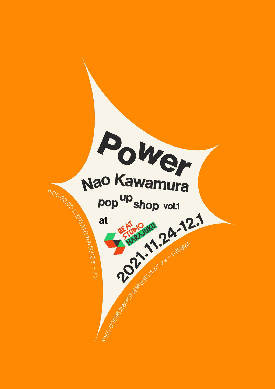 同作のリリースを記念して、「Nao Kawamura pop up shop vol.1 “Power”」を東京・原宿 BE AT STUDIO HARAJUKU(ラフォーレ原宿 6F)にて11月24日から12月1日(水)まで開催。Kawamuraがセレクトした古着、小物や、オリジナル・アイテムが販売されます。Kawamura本人も店頭に立つ予定。