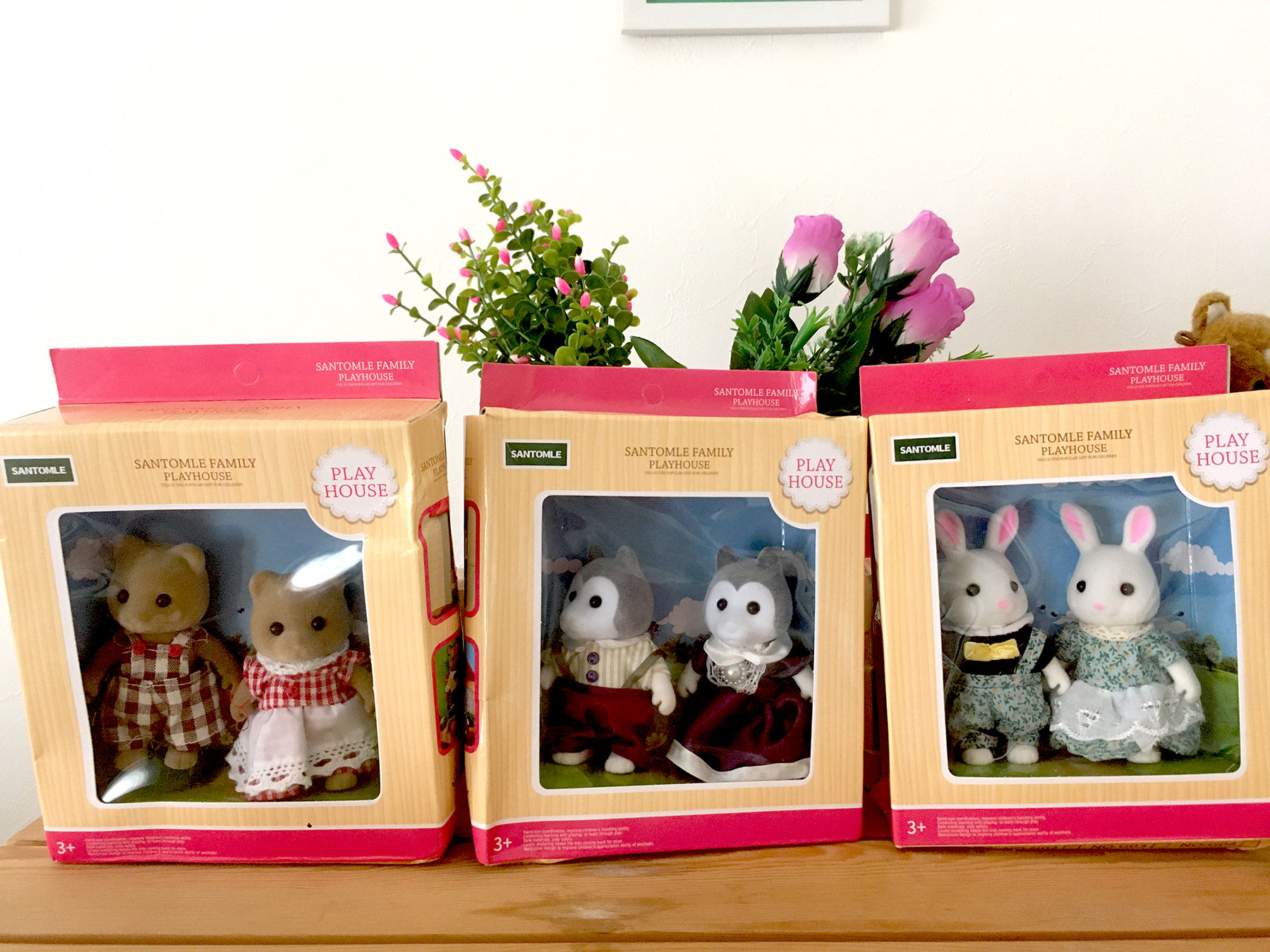シルバニアのブートはなぜか全然ない!昔に売られていたであろうブートは「まんだらけ」などで買って、いくつか持ってはいるものの、ほんの数種類しか見つけられていない。くやちーーー。もっとブートほしい。ほしいよー。そんな中、『SANTOMLE FAMILY』(なんて読むの?)を見つけました!!! 普通すぎてズッコケ感はあまりないけど、顔のフロッキーが汚かったり、洋服の糸が結構出てたり雑〜。シベリアンハスキーの顔〜。開けてみたらプラスチックがめちゃ安っちい。やかんの取手がゴツすぎる。ブートなのでオッケー!もっとほしい。何も知らないで買った人が、コメントで「オリジナルじゃない」と怒っていたけど、そっちのほうがわたしはズッコケでした。