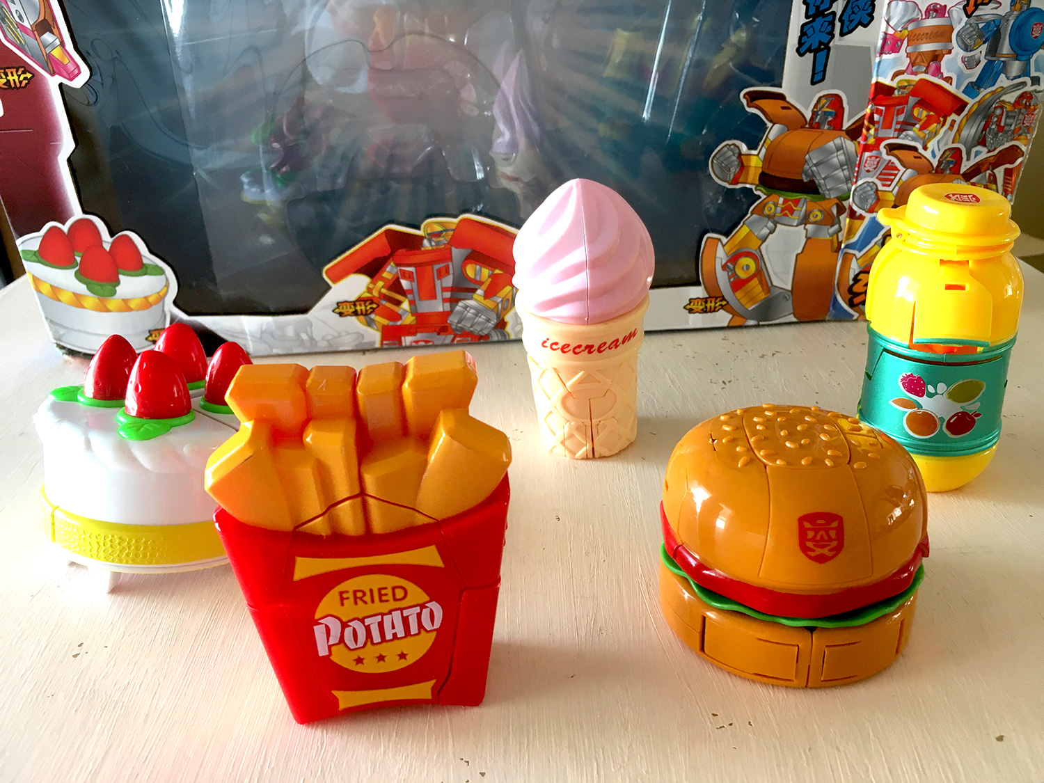80年代のハッピーセットで、ハンバーガーとかポテトからロボットになるやつがあったんですけど、それのブートを見つけました〜。オリジナルはハッピーセットだと100パー思ったけど、なんかサイズが大きいしちがうかも……と調べてみると、『仮面ライダーフォーゼ』の“フードロイド”っぽい。へーーー。仮面ライダー全くわからないのでスルーします。