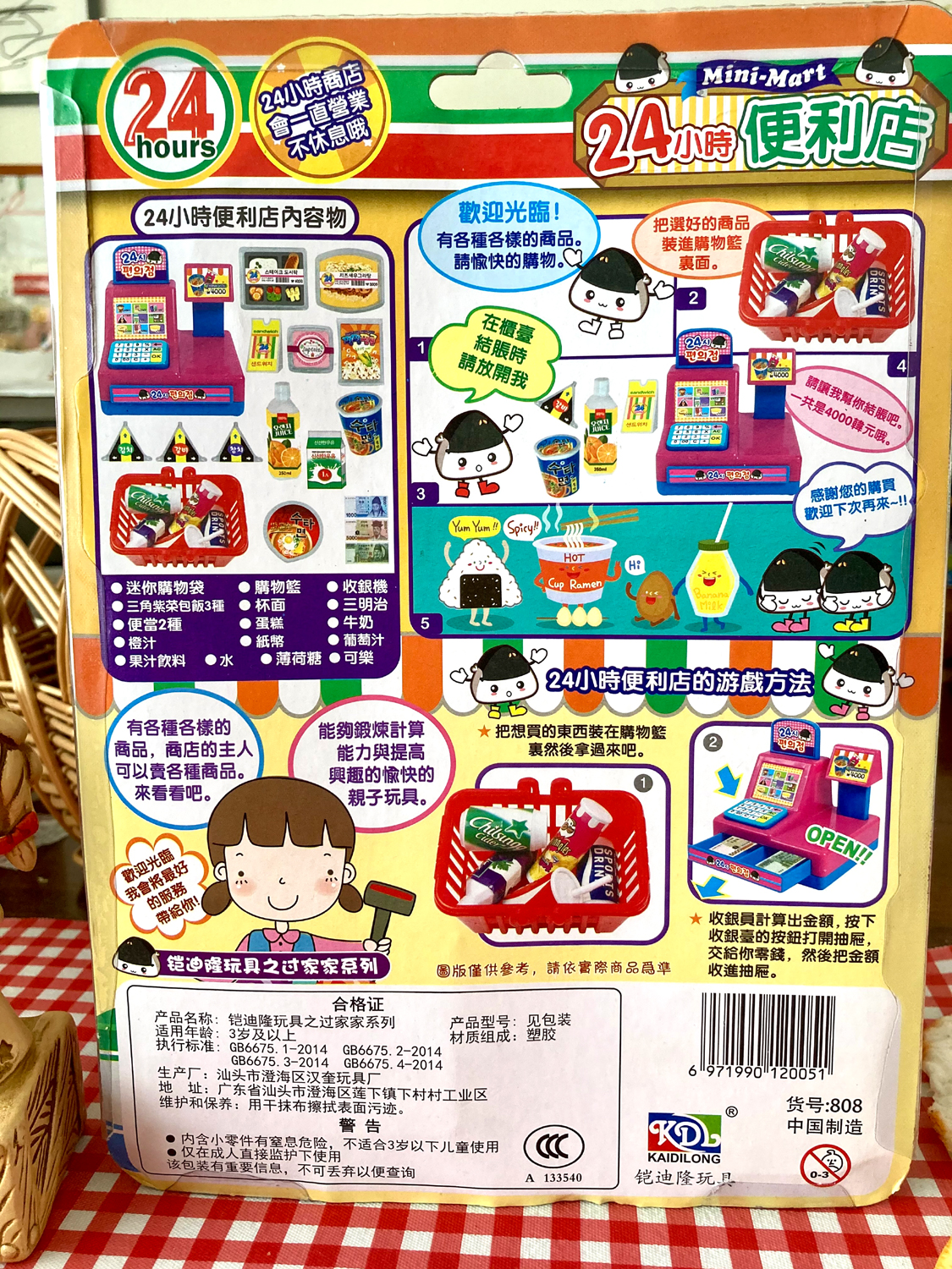 「セブン-イレブン」みたいな色が使われておりますね。おもちゃなので、実際に売られている商品そのままのパッケージではないと思いますが、表記が韓国語で韓国紙幣も入っていて、それだけでいい。ってよく見たら、サンドイッチと右の弁当くらいにしか韓国語書いてないじゃん!パッケージでだいぶごまかされている!!! まあ今回は許してあげよう。