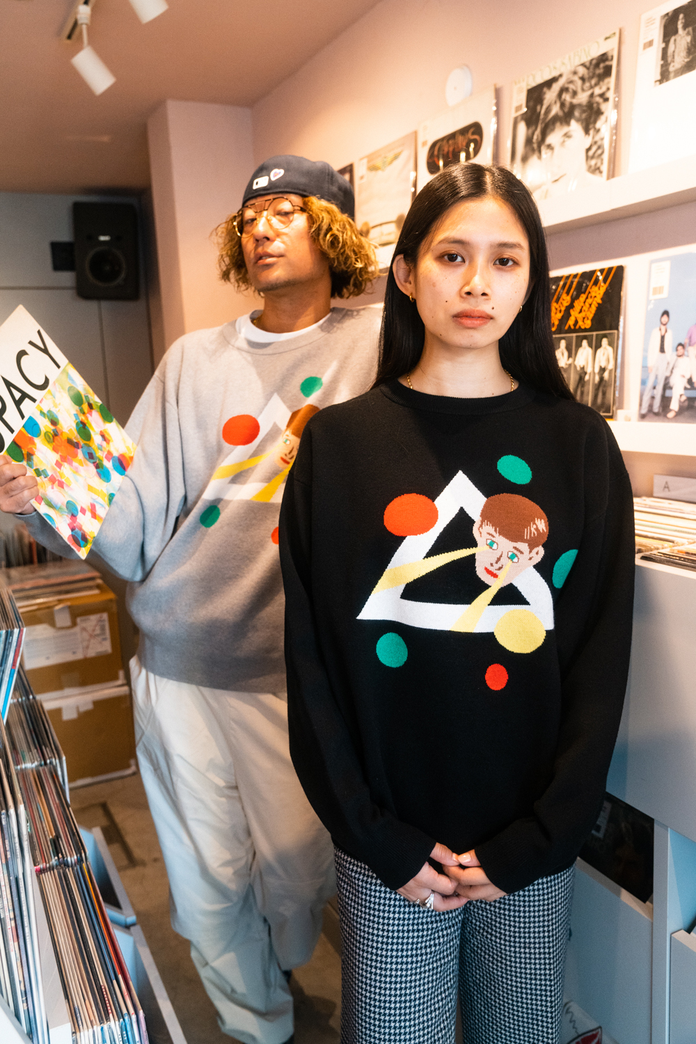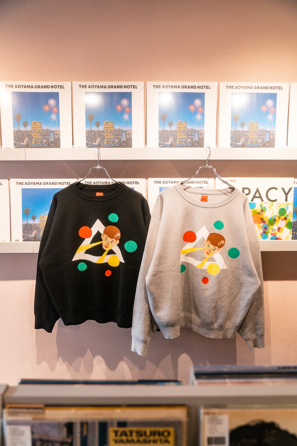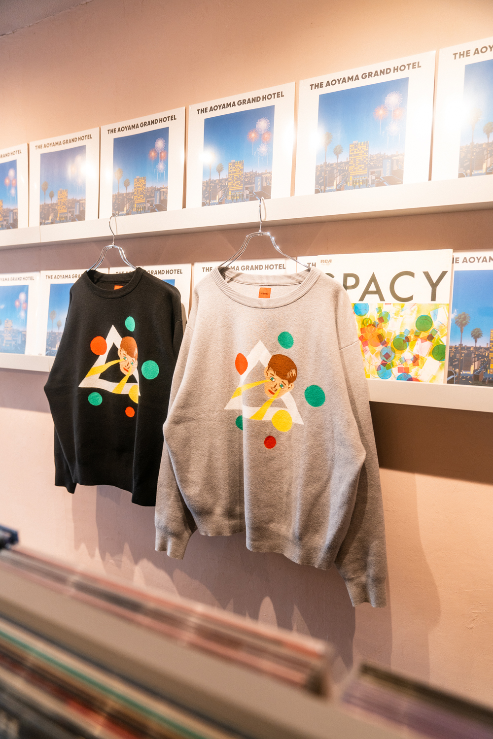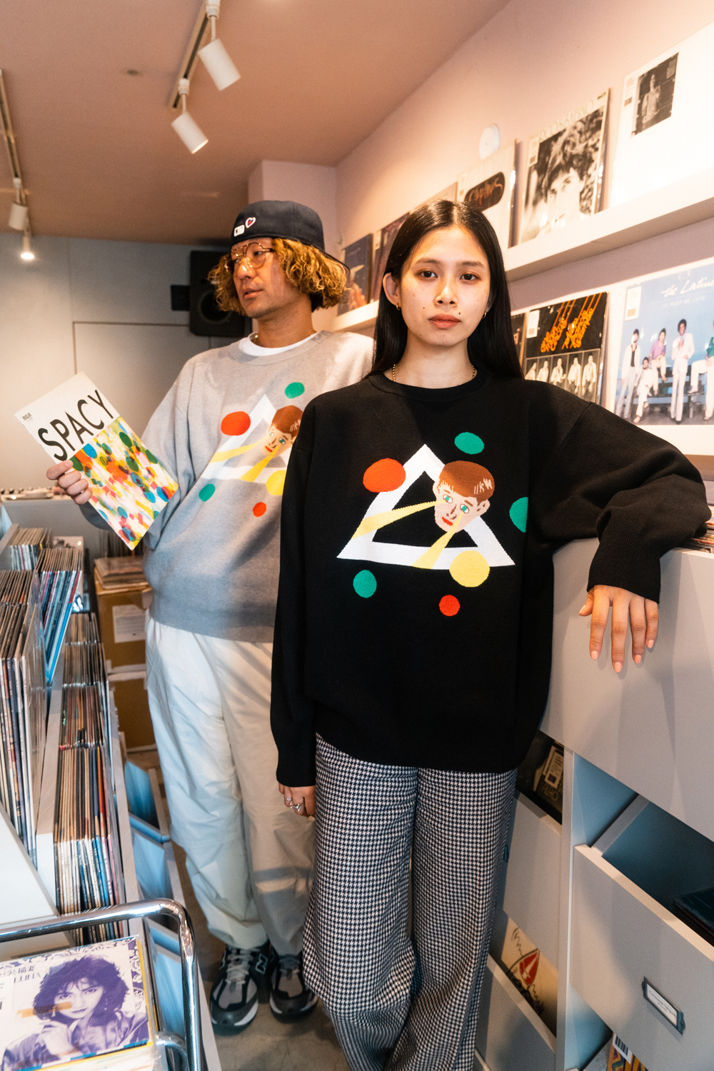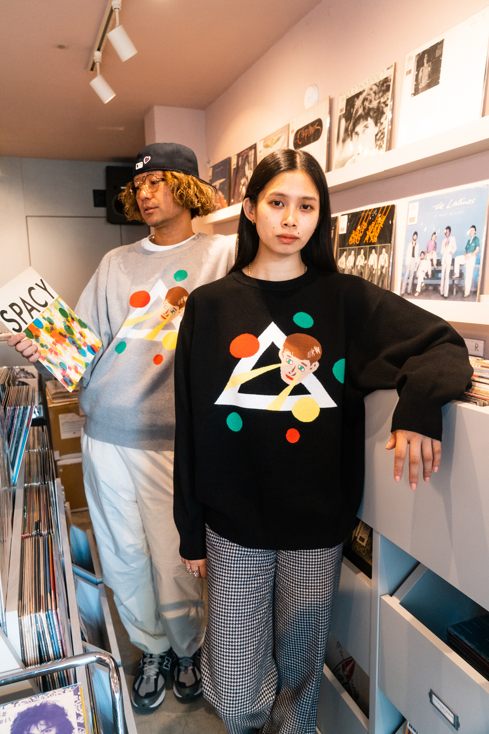 90sレガシー・スウェットからパターンを起こし、太いアームが特徴的なシェイプとなっている「NEMES "SPACY" KNIT」(NEMES 249 | 12,000円 + 税)は、ブラックとグレイの2色展開。某国内レジェンドが1970年代後半にリリースした名盤をモチーフにしたグラフィックがフィーチャーされています。