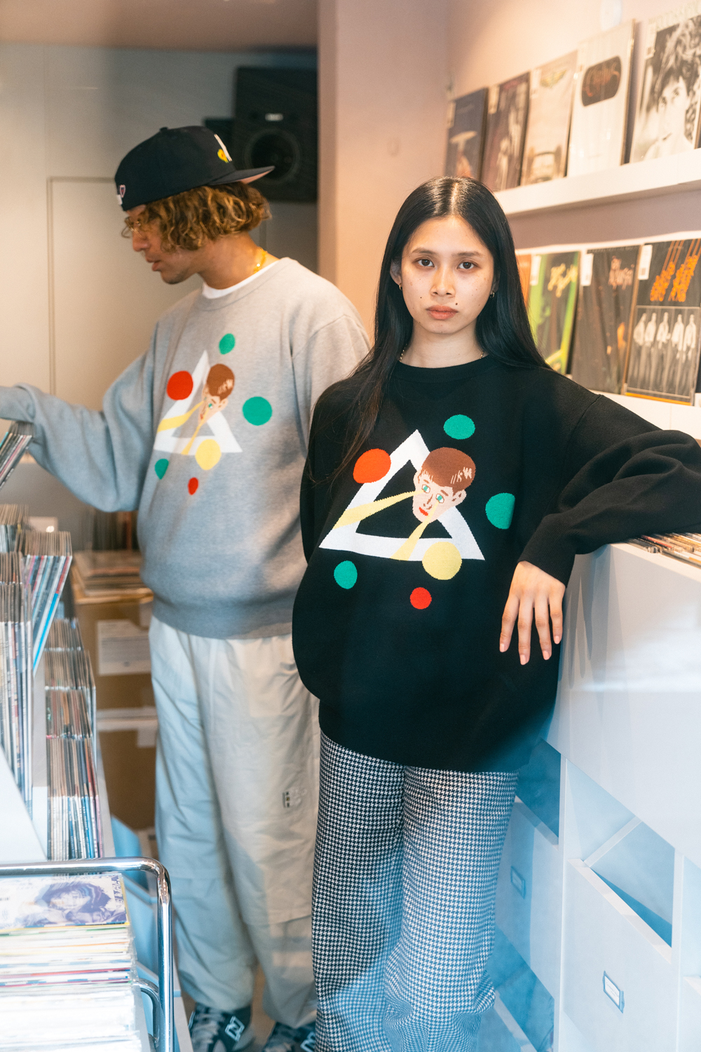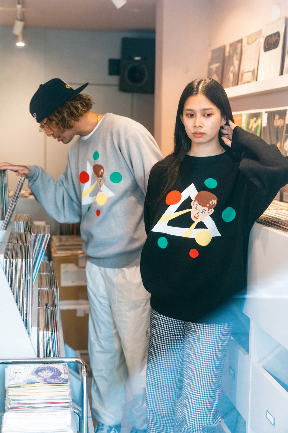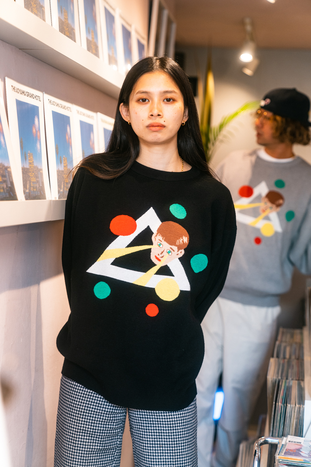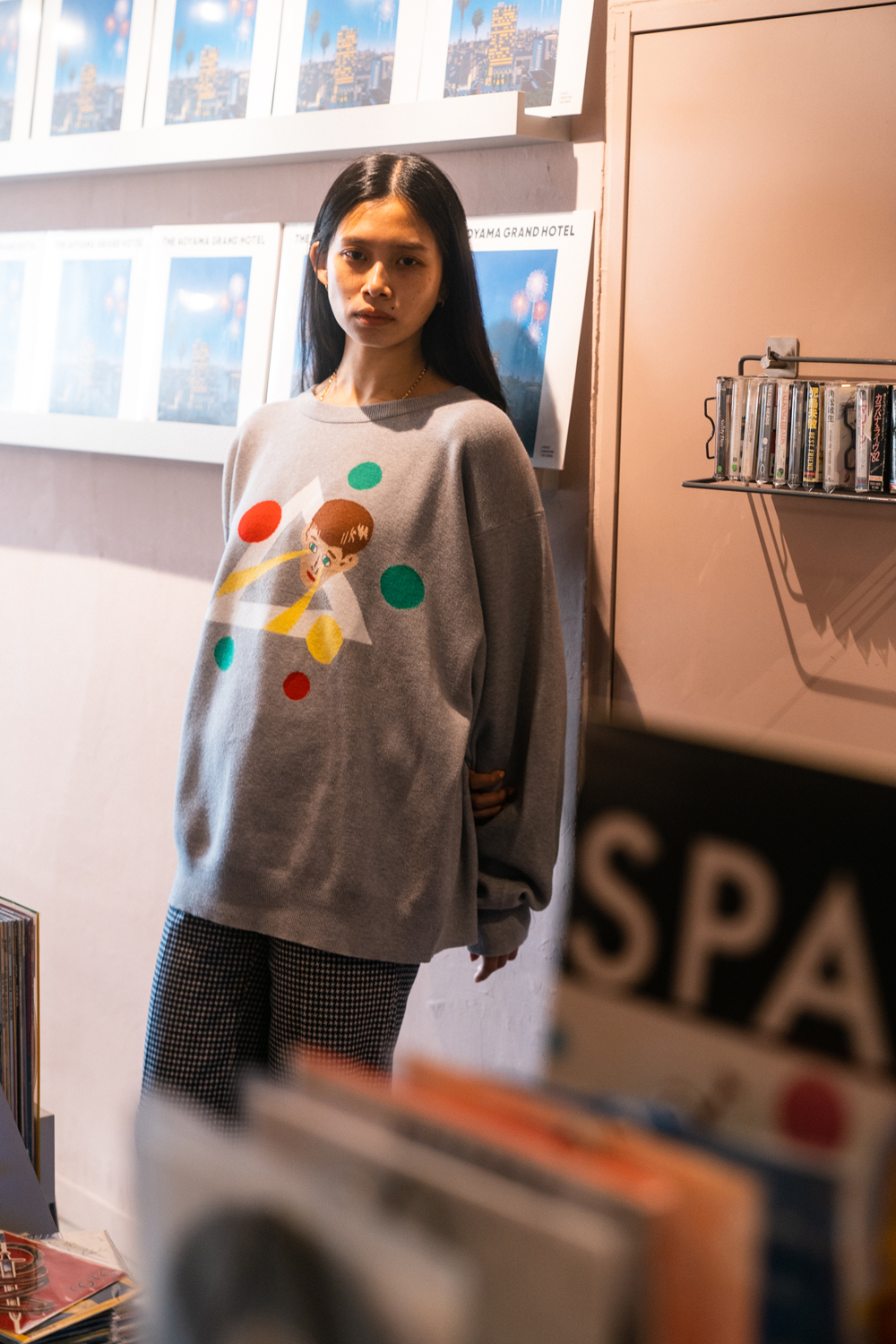 90sレガシー・スウェットからパターンを起こし、太いアームが特徴的なシェイプとなっている「NEMES "SPACY" KNIT」(NEMES 249 | 12,000円 + 税)は、ブラックとグレイの2色展開。某国内レジェンドが1970年代後半にリリースした名盤をモチーフにしたグラフィックがフィーチャーされています。