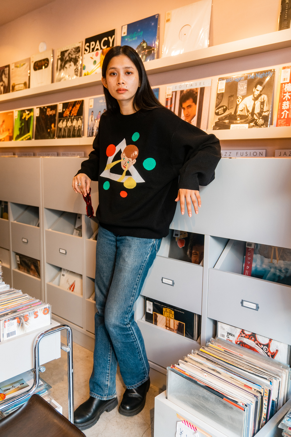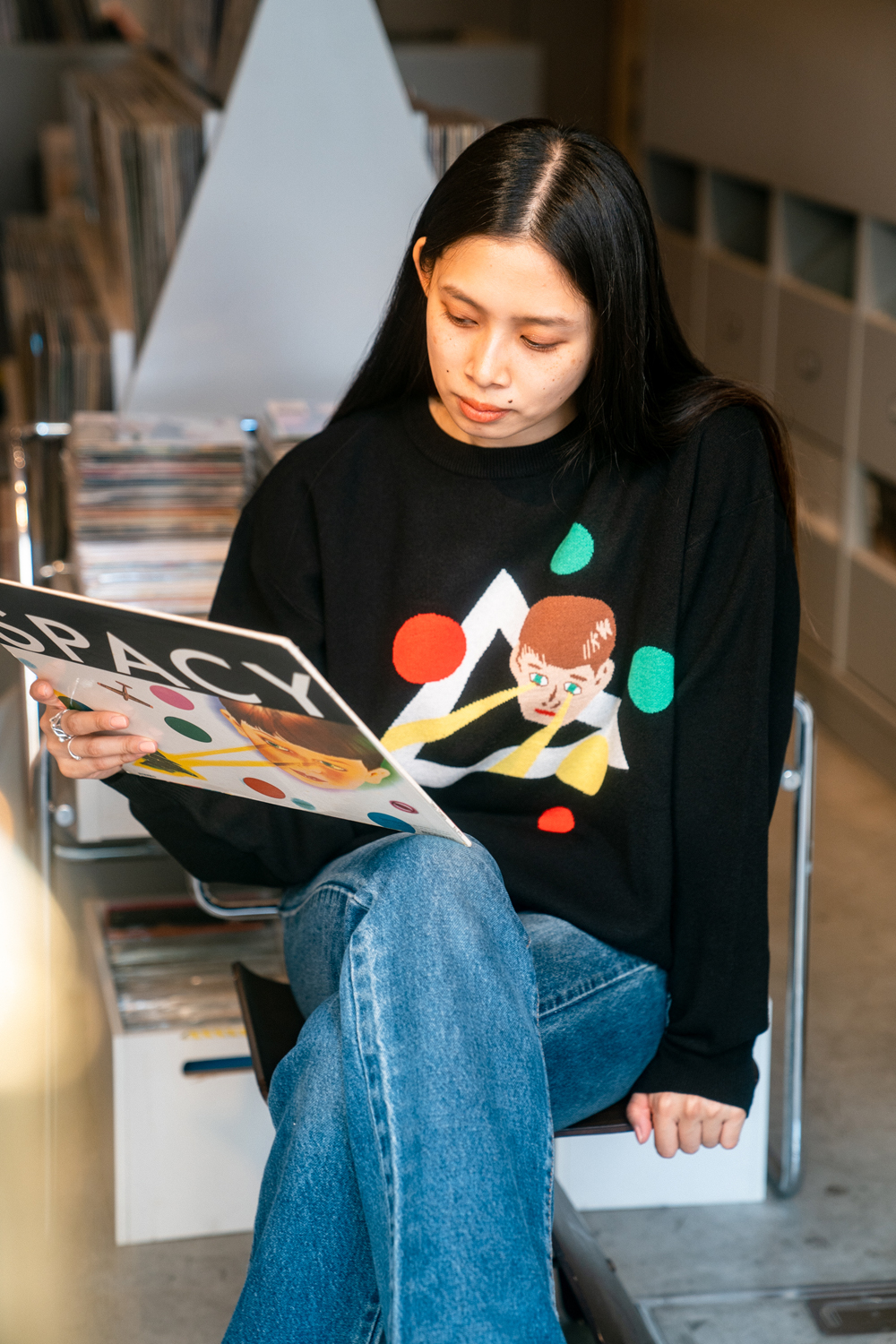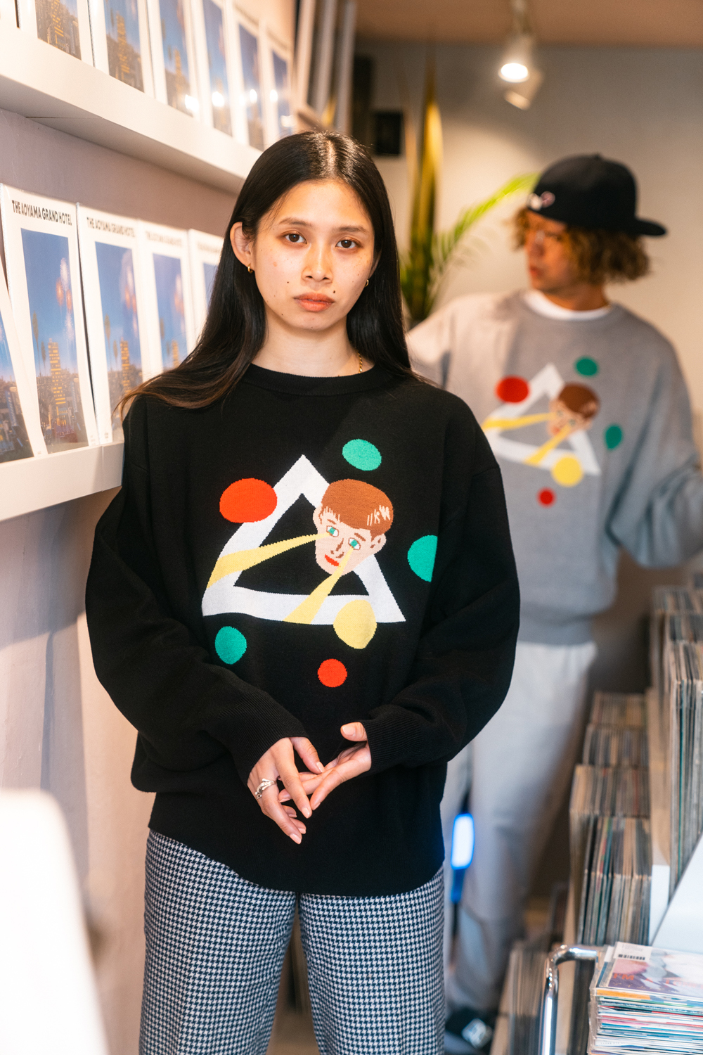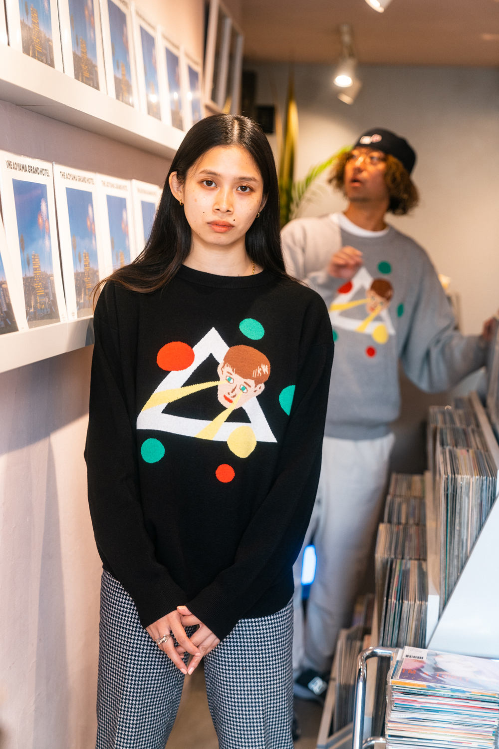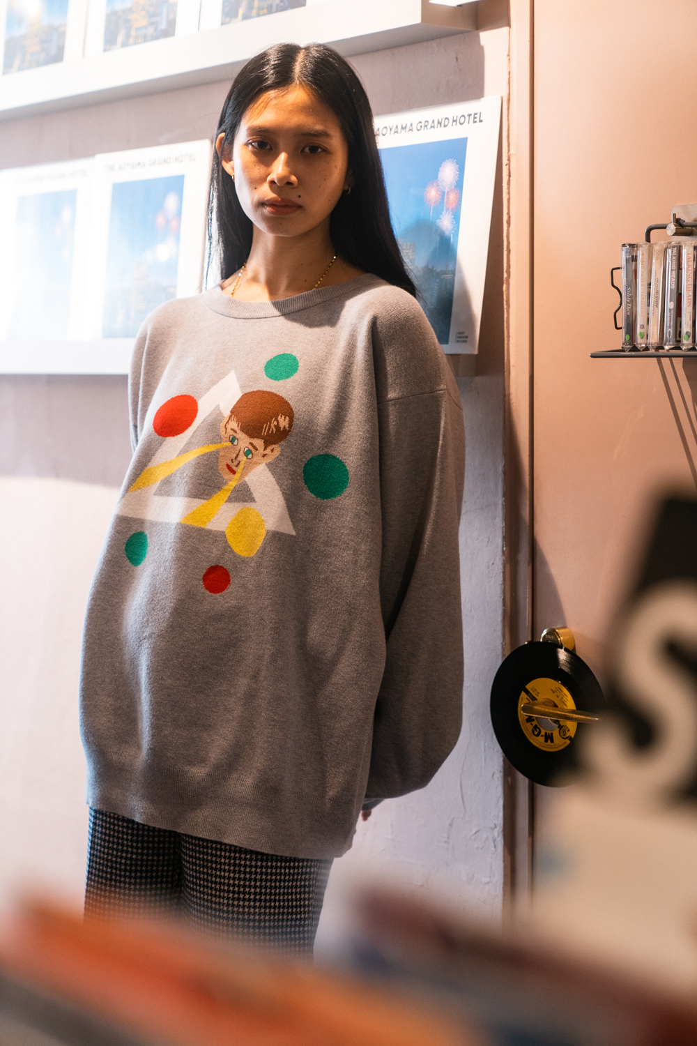 90sレガシー・スウェットからパターンを起こし、太いアームが特徴的なシェイプとなっている「NEMES "SPACY" KNIT」(NEMES 249 | 12,000円 + 税)は、ブラックとグレイの2色展開。某国内レジェンドが1970年代後半にリリースした名盤をモチーフにしたグラフィックがフィーチャーされています。