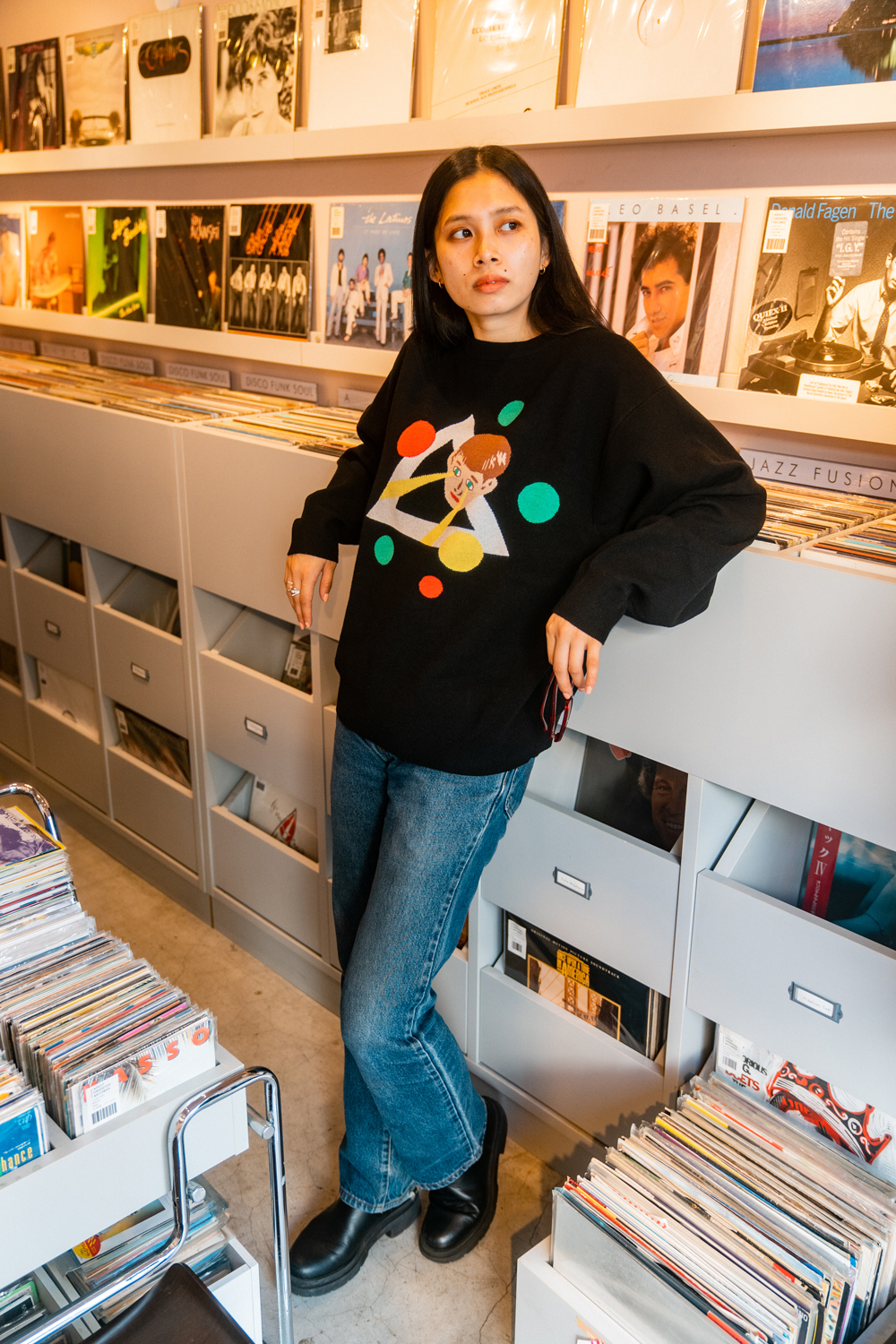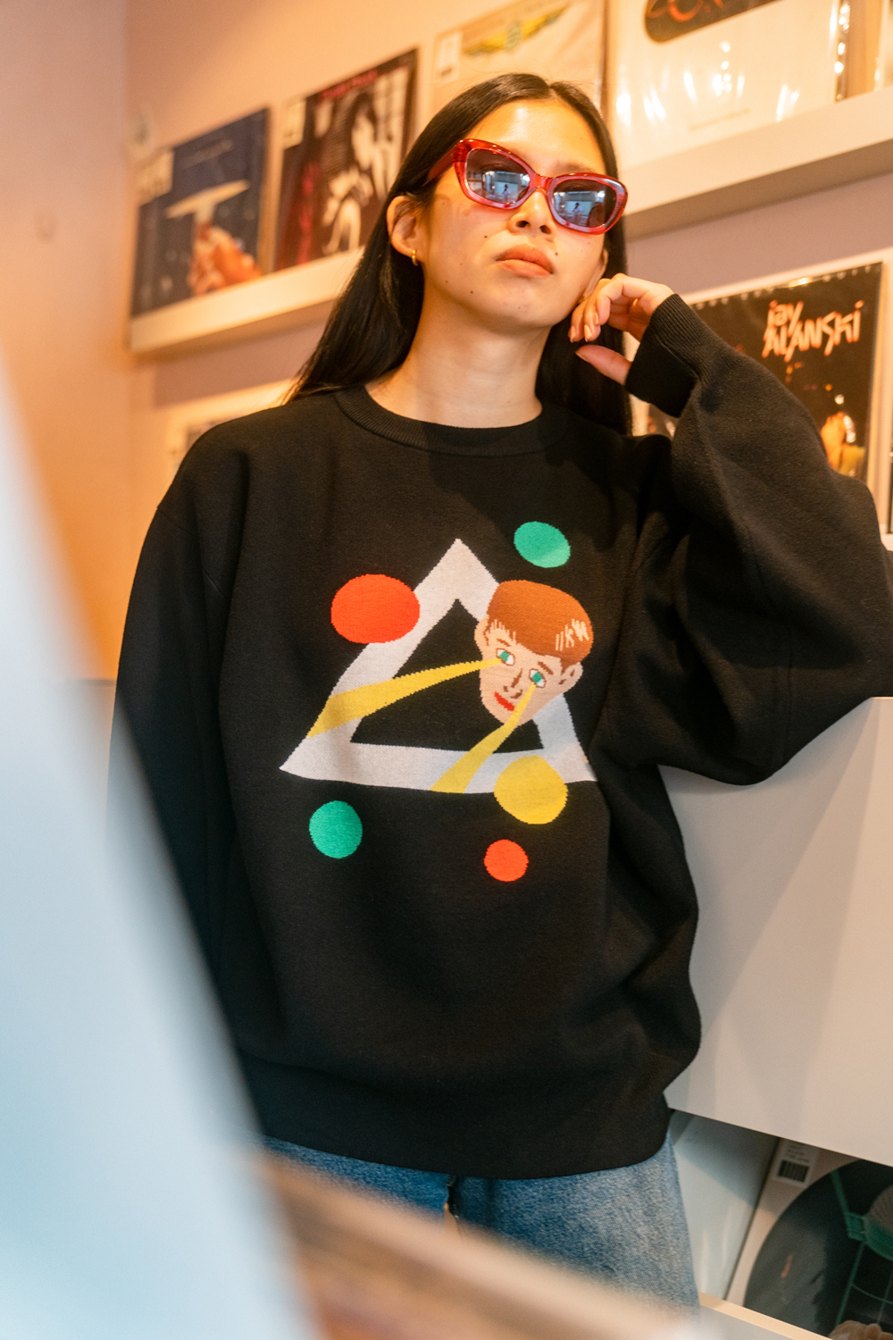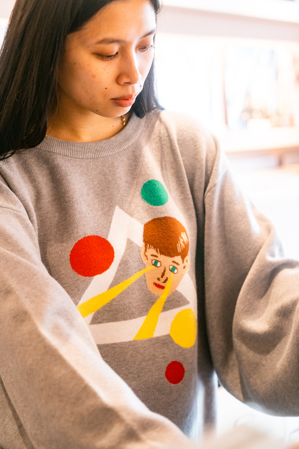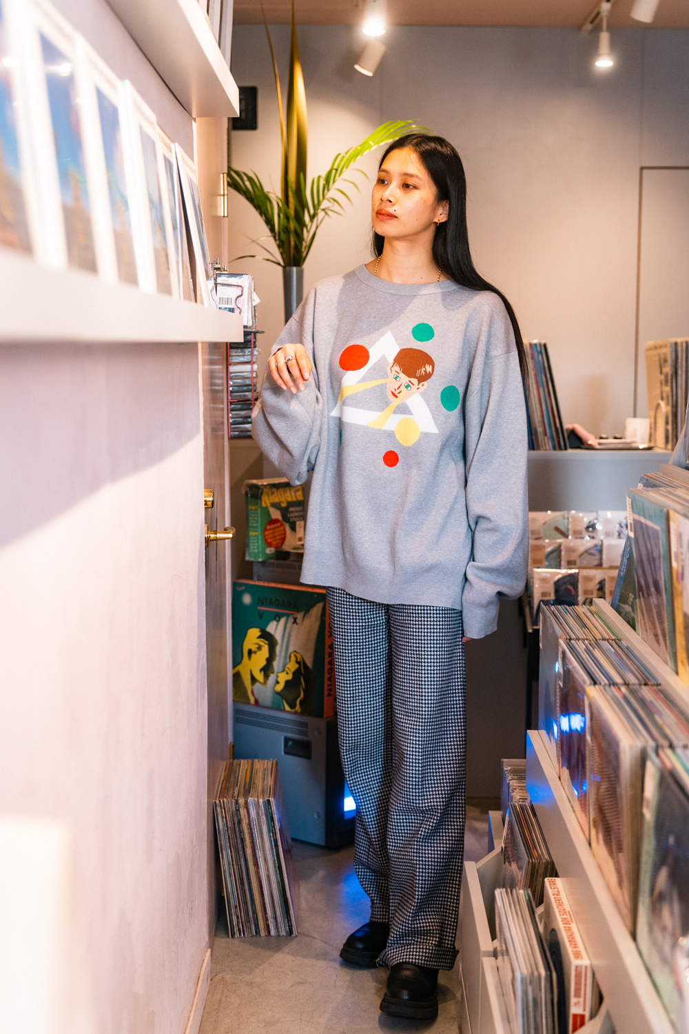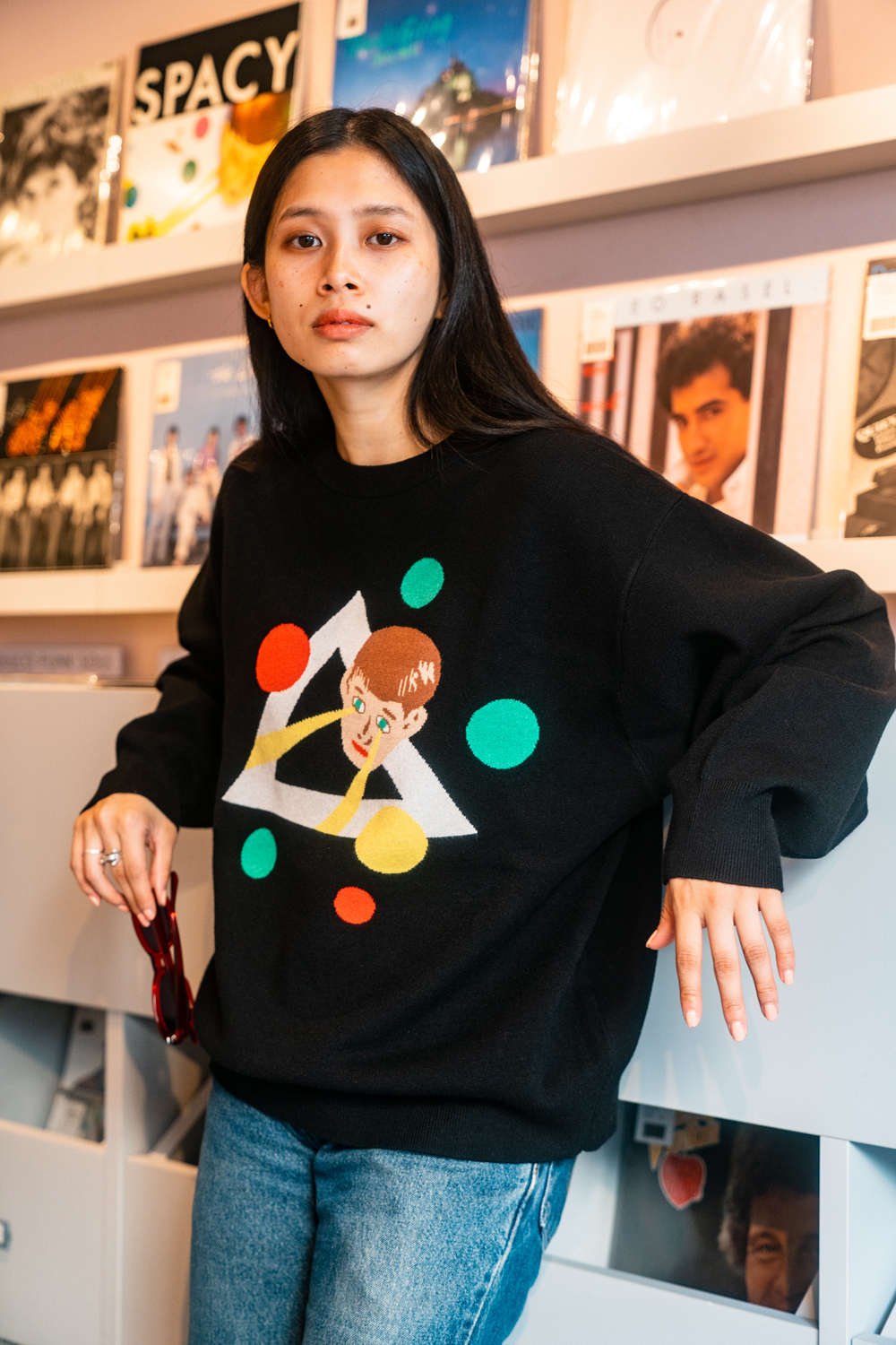 90sレガシー・スウェットからパターンを起こし、太いアームが特徴的なシェイプとなっている「NEMES "SPACY" KNIT」(NEMES 249 | 12,000円 + 税)は、ブラックとグレイの2色展開。某国内レジェンドが1970年代後半にリリースした名盤をモチーフにしたグラフィックがフィーチャーされています。