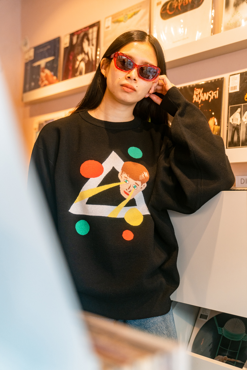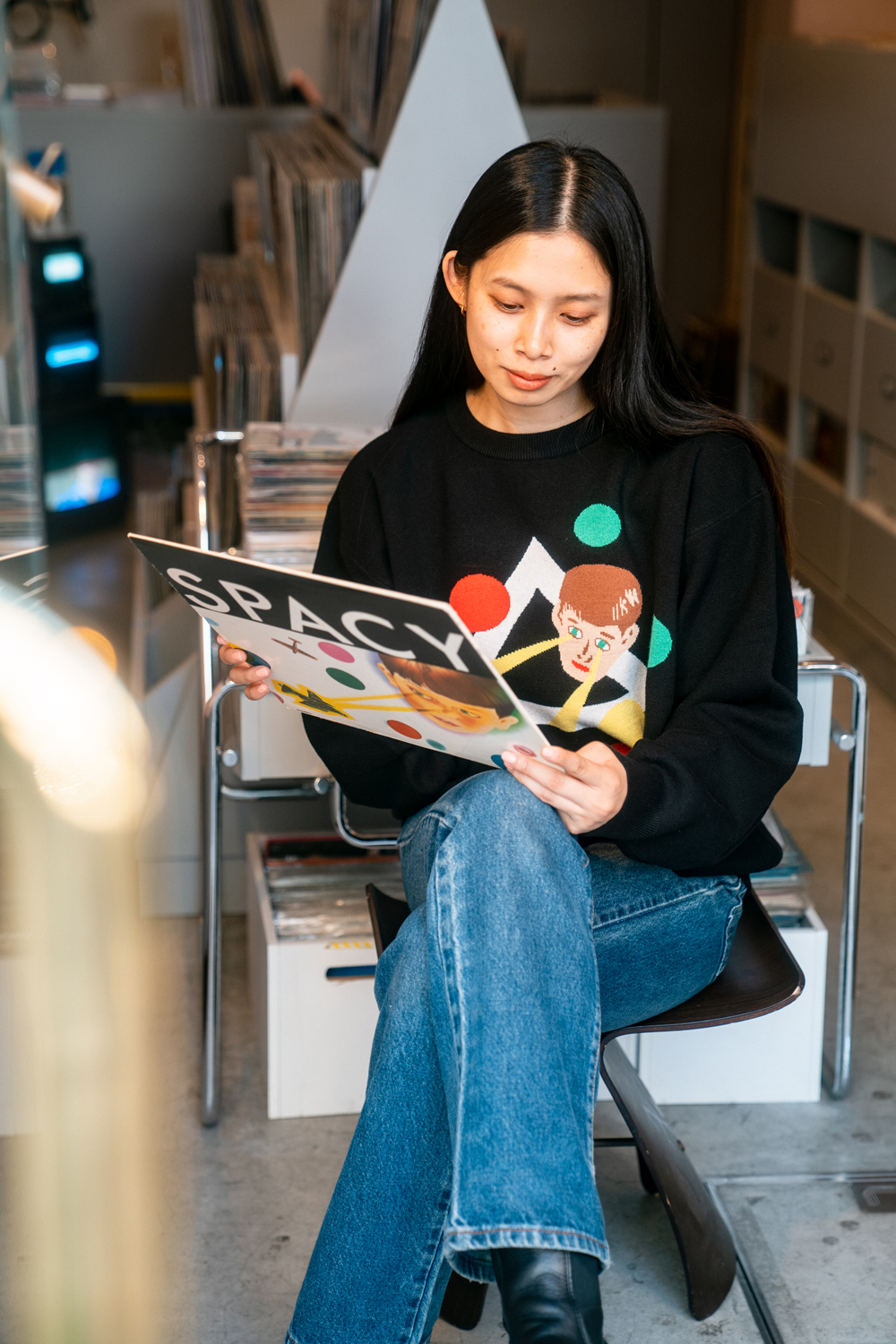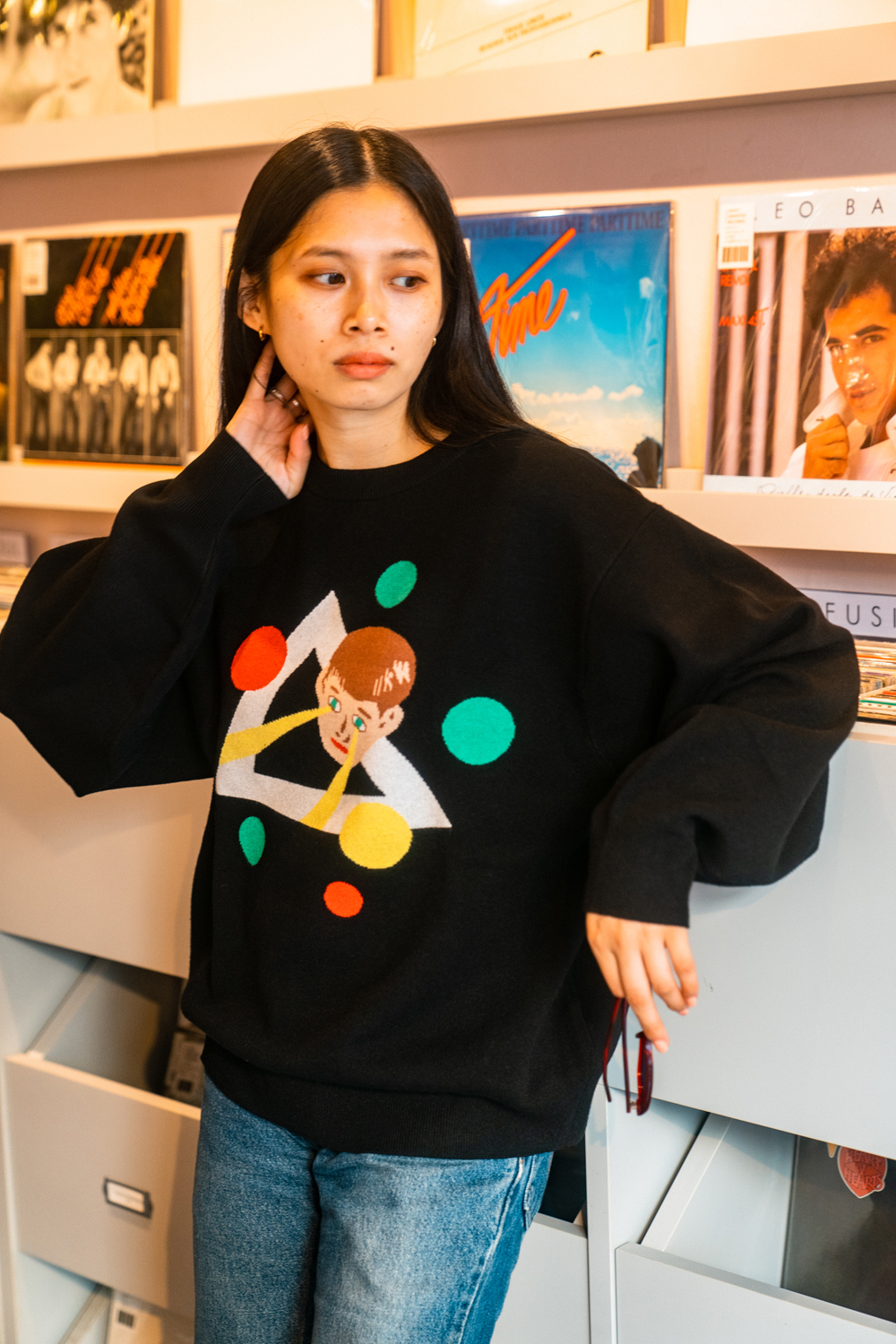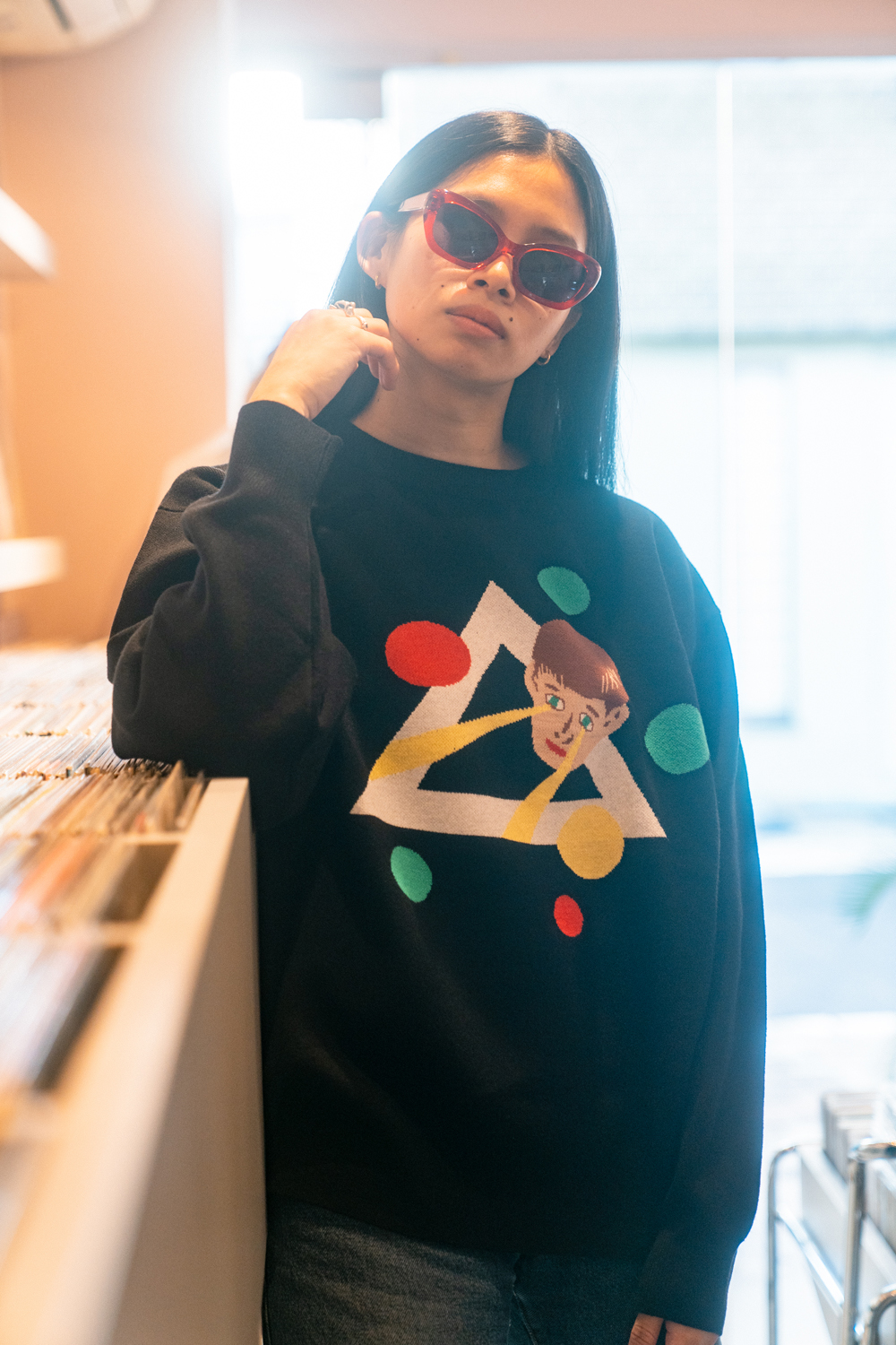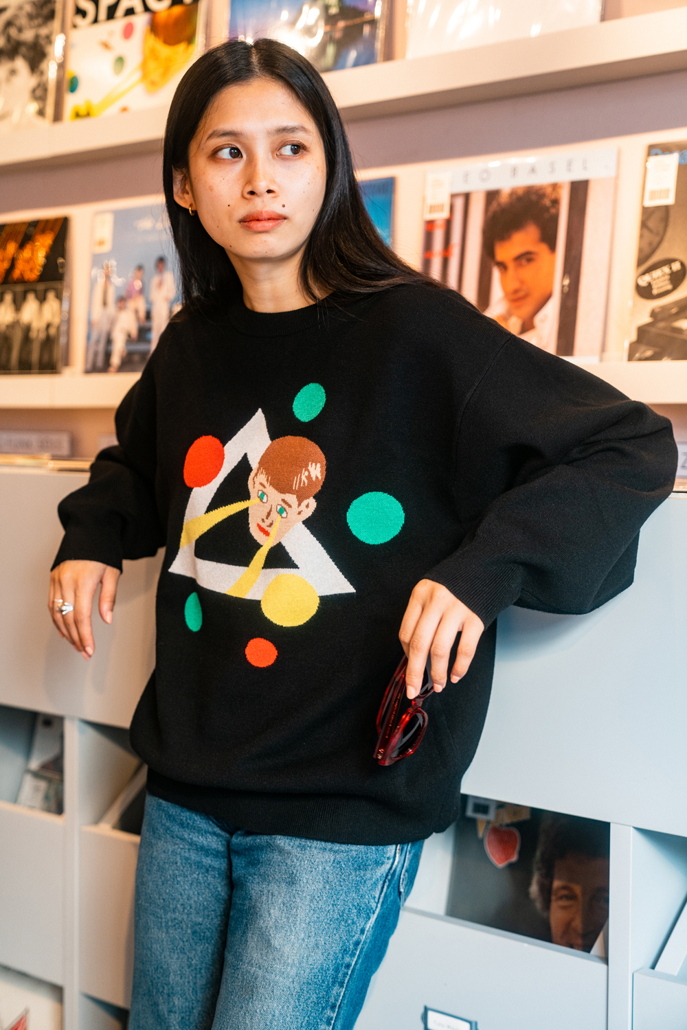 90sレガシー・スウェットからパターンを起こし、太いアームが特徴的なシェイプとなっている「NEMES "SPACY" KNIT」(NEMES 249 | 12,000円 + 税)は、ブラックとグレイの2色展開。某国内レジェンドが1970年代後半にリリースした名盤をモチーフにしたグラフィックがフィーチャーされています。