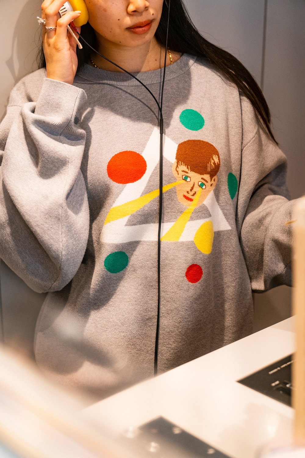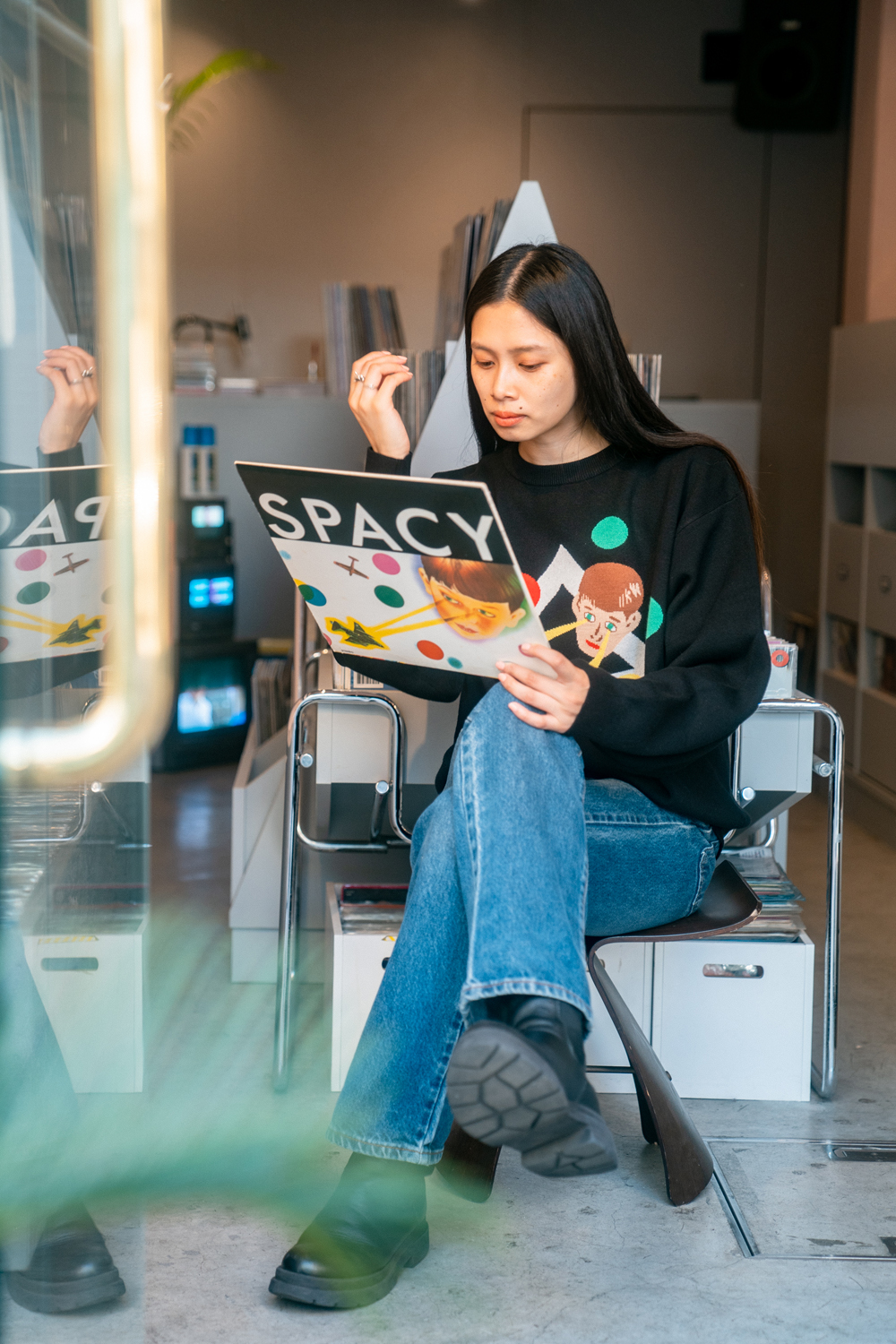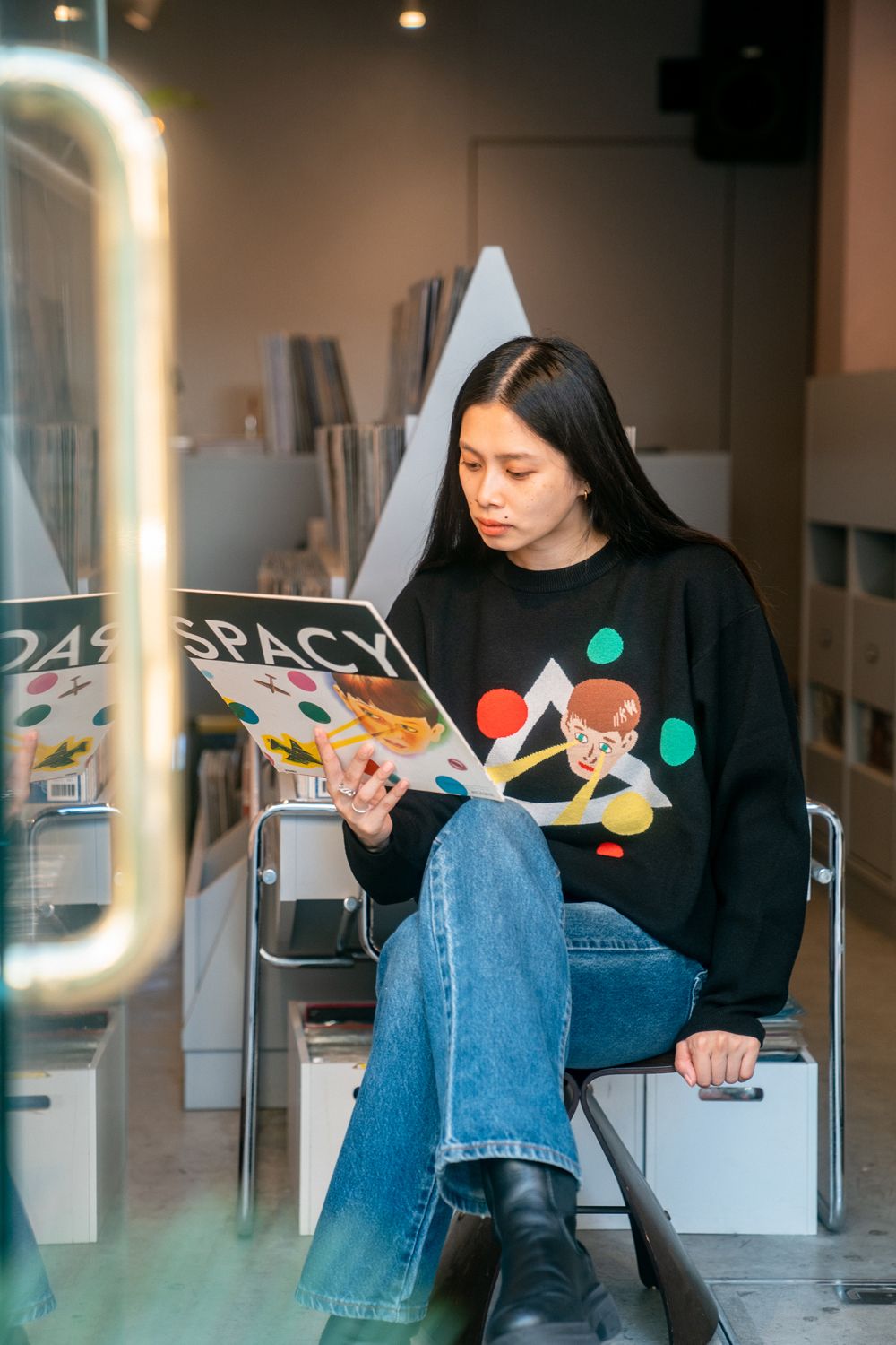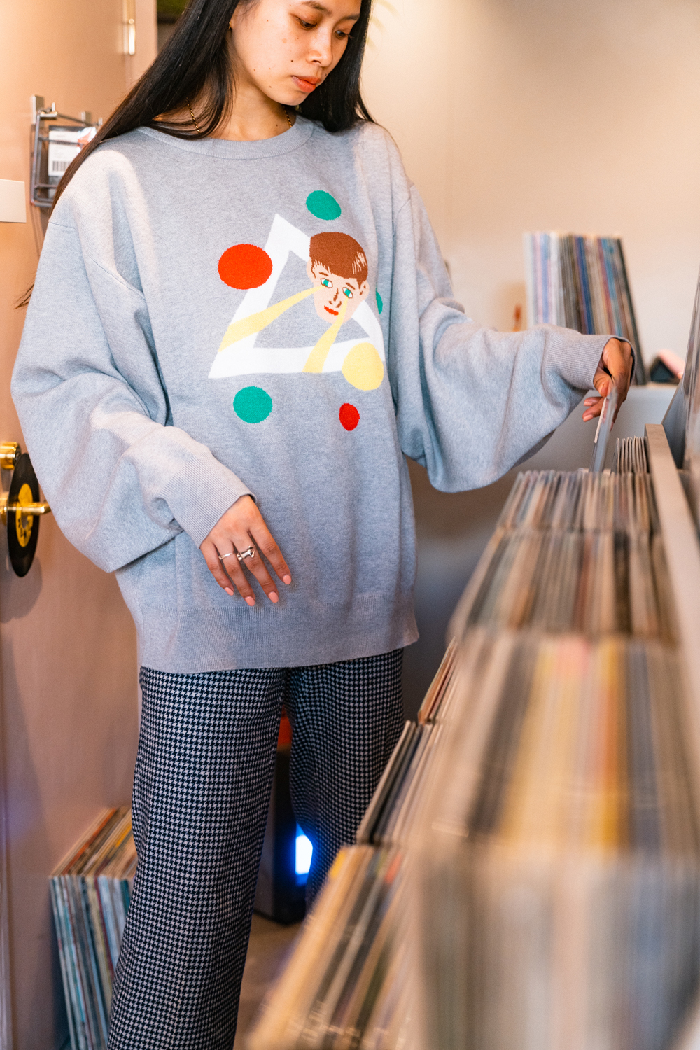 90sレガシー・スウェットからパターンを起こし、太いアームが特徴的なシェイプとなっている「NEMES "SPACY" KNIT」(NEMES 249 | 12,000円 + 税)は、ブラックとグレイの2色展開。某国内レジェンドが1970年代後半にリリースした名盤をモチーフにしたグラフィックがフィーチャーされています。
