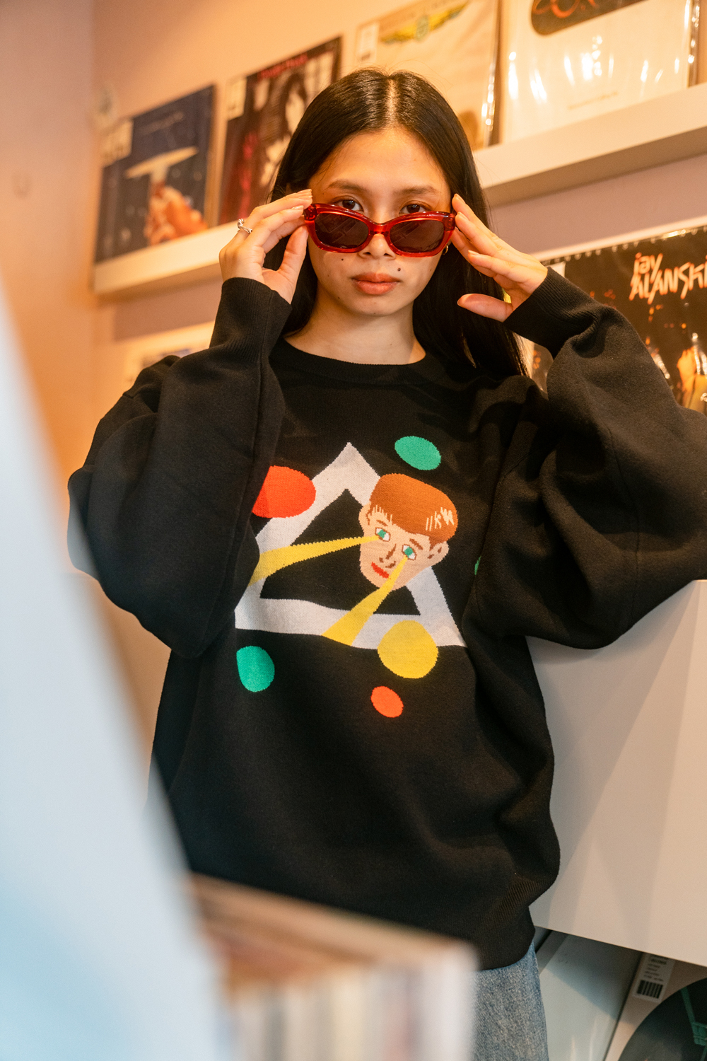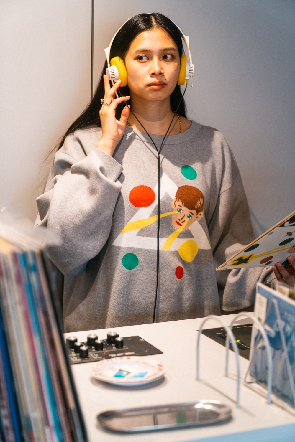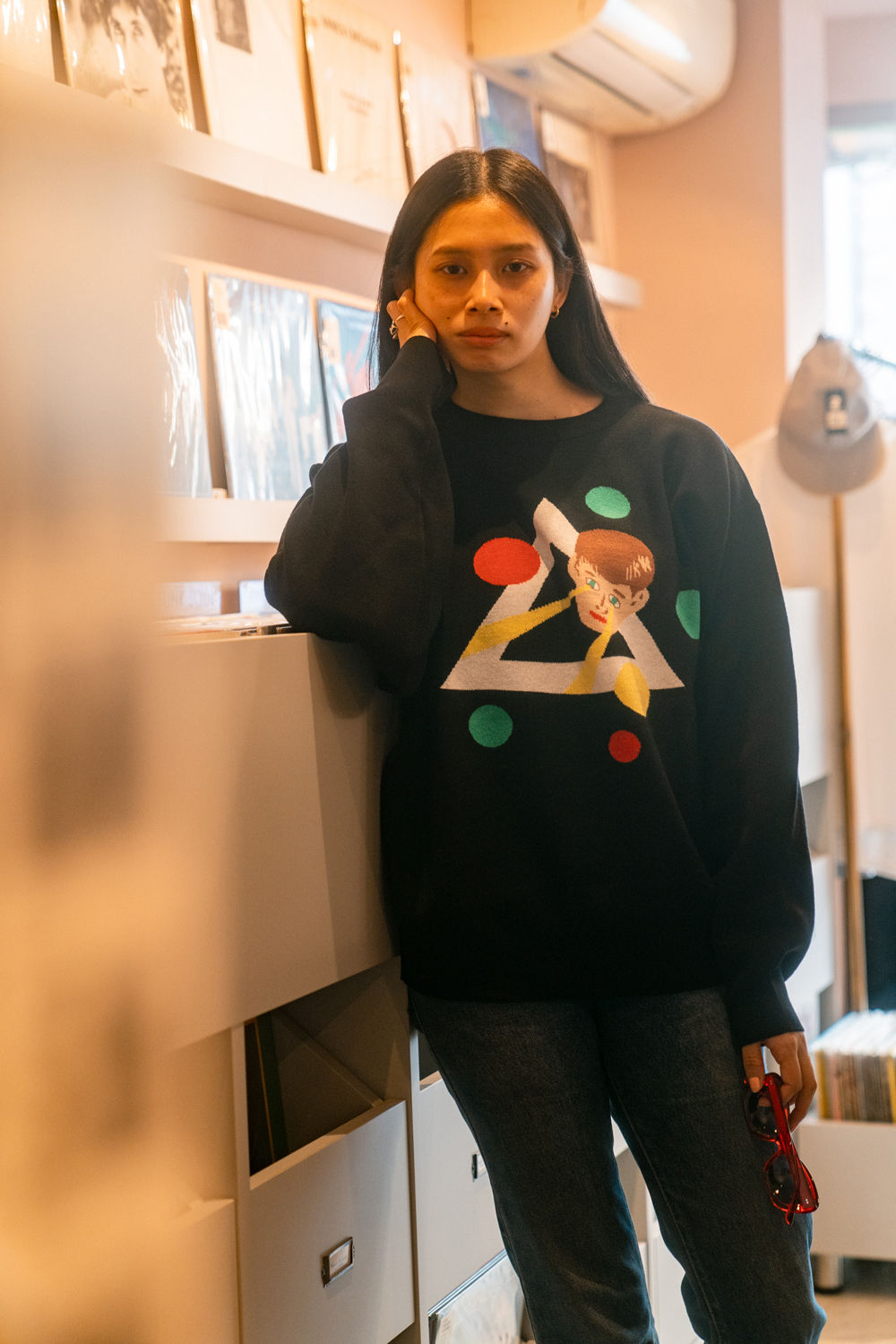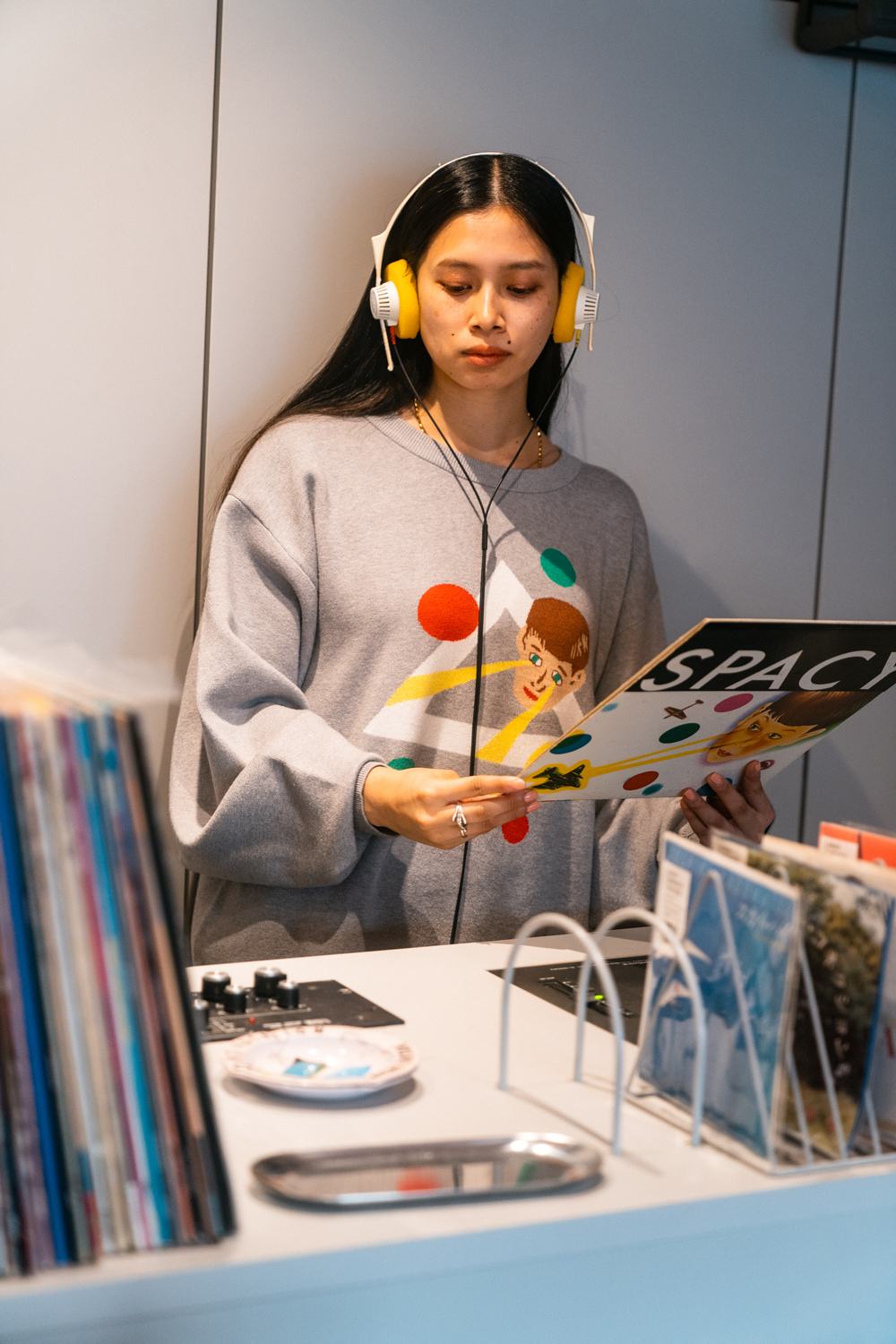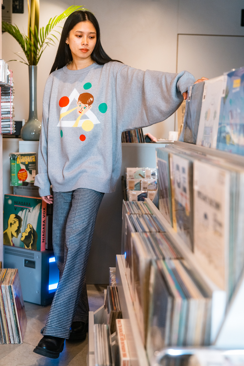 90sレガシー・スウェットからパターンを起こし、太いアームが特徴的なシェイプとなっている「NEMES "SPACY" KNIT」(NEMES 249 | 12,000円 + 税)は、ブラックとグレイの2色展開。某国内レジェンドが1970年代後半にリリースした名盤をモチーフにしたグラフィックがフィーチャーされています。