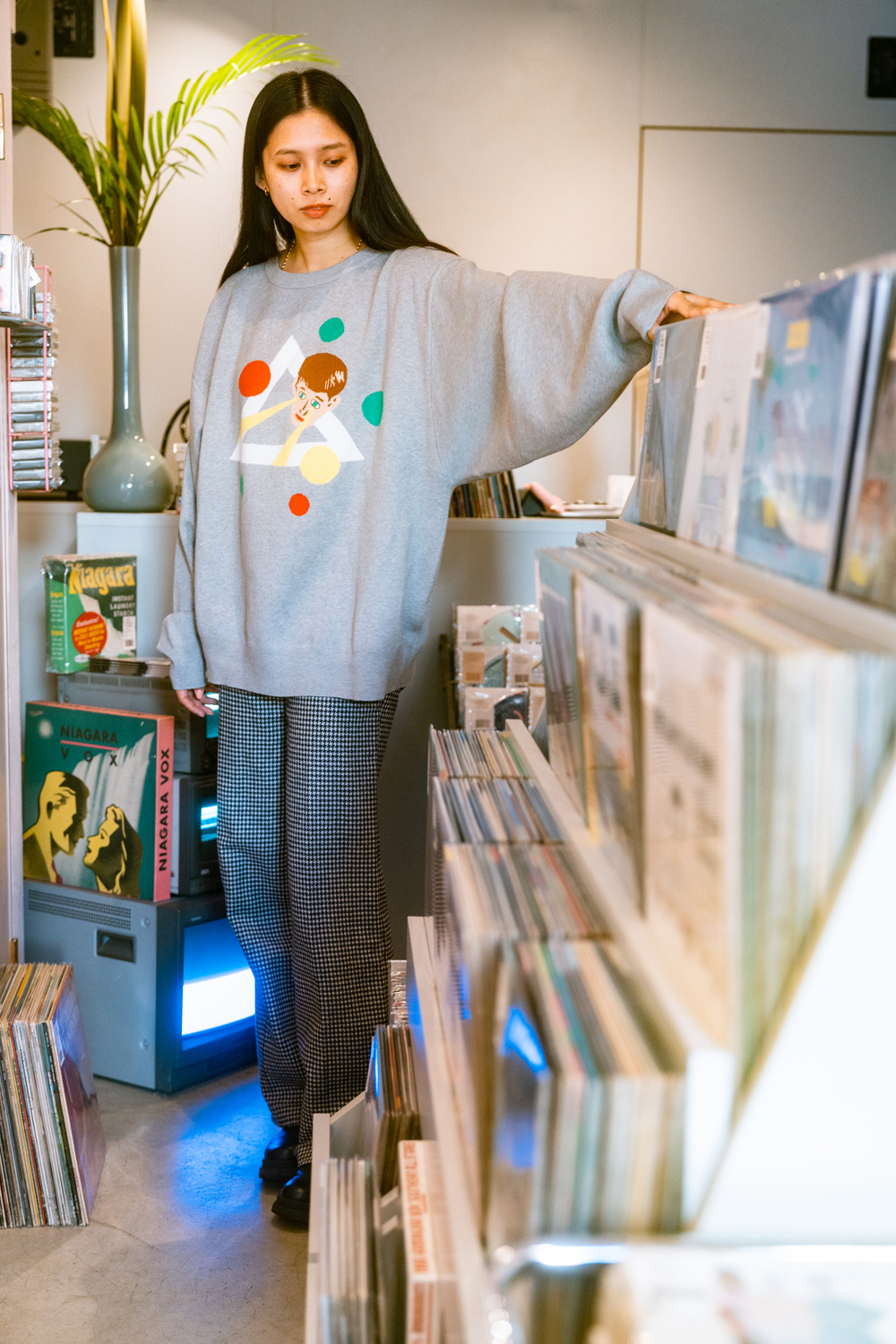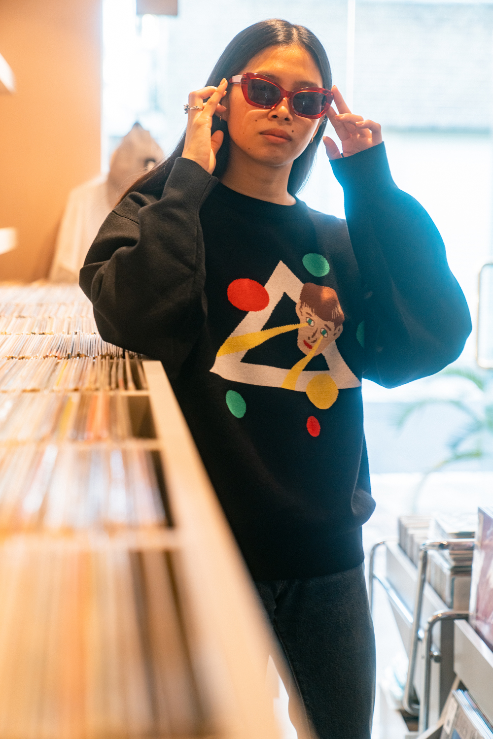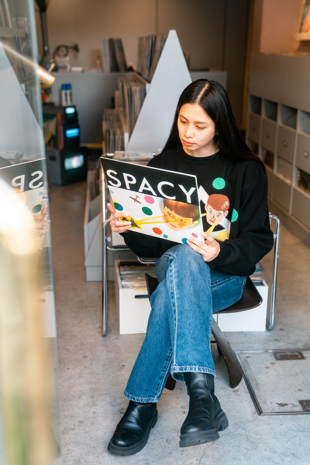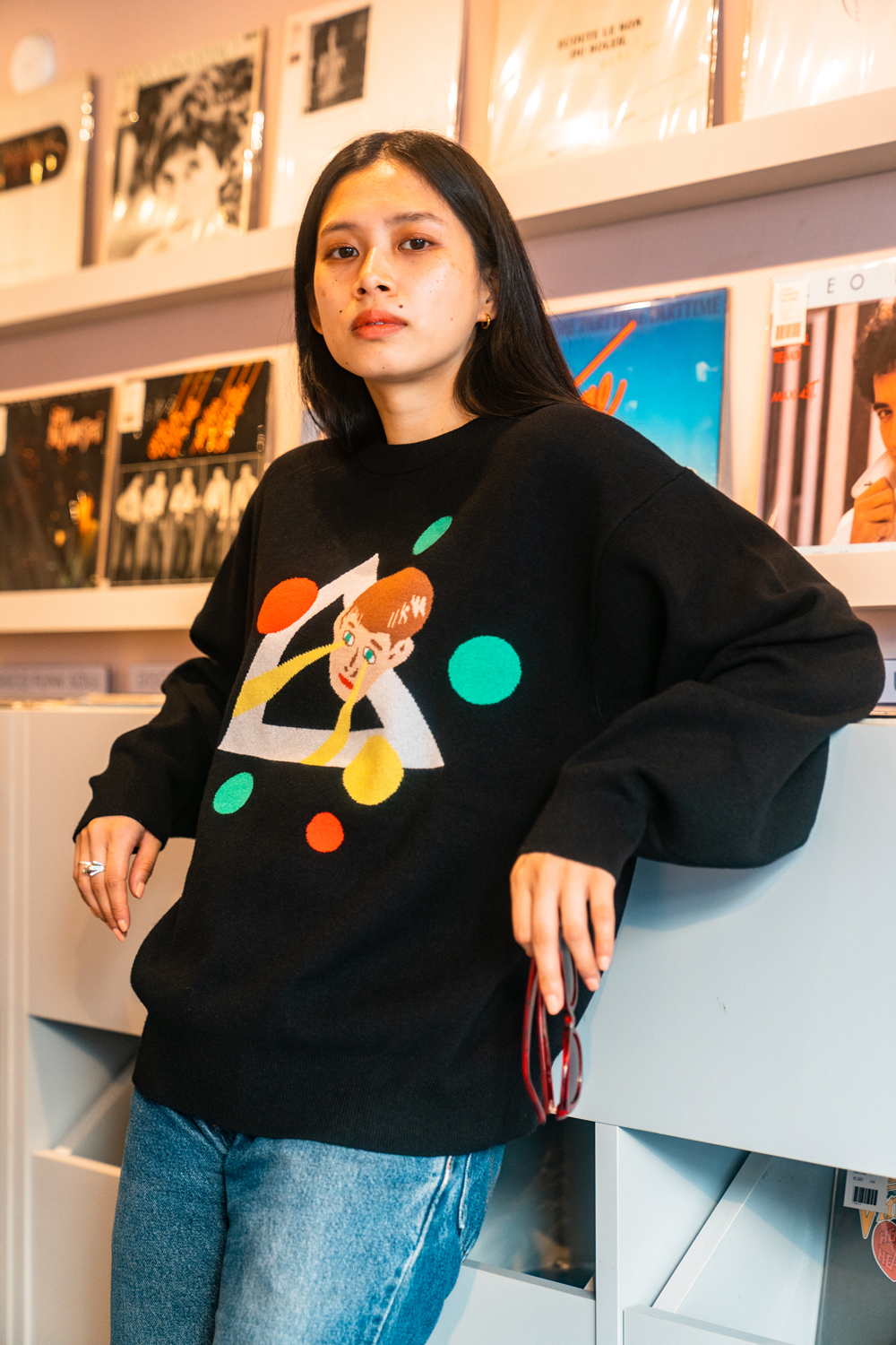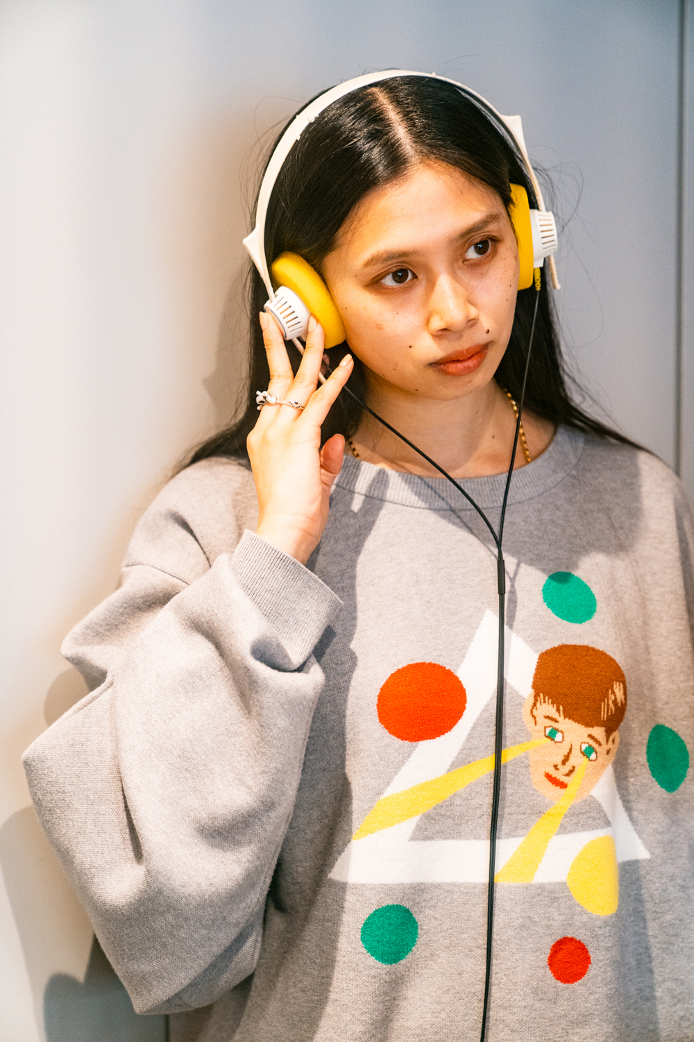 90sレガシー・スウェットからパターンを起こし、太いアームが特徴的なシェイプとなっている「NEMES "SPACY" KNIT」(NEMES 249 | 12,000円 + 税)は、ブラックとグレイの2色展開。某国内レジェンドが1970年代後半にリリースした名盤をモチーフにしたグラフィックがフィーチャーされています。