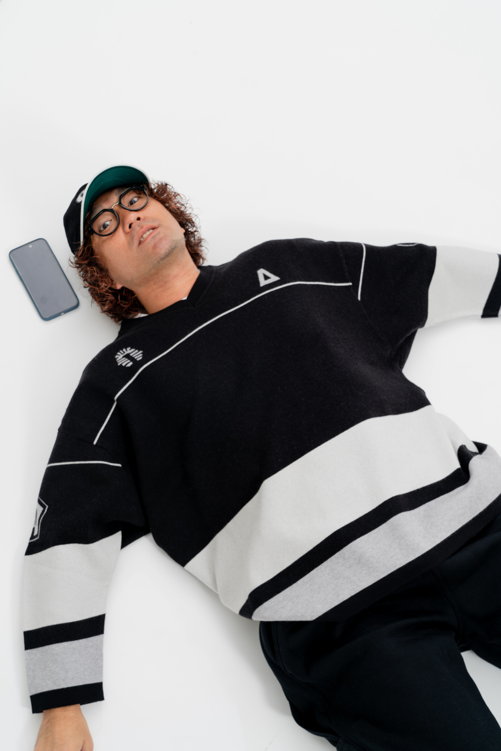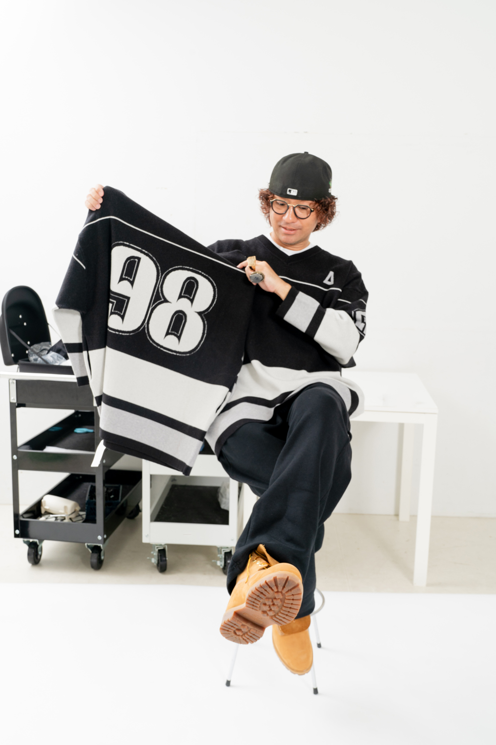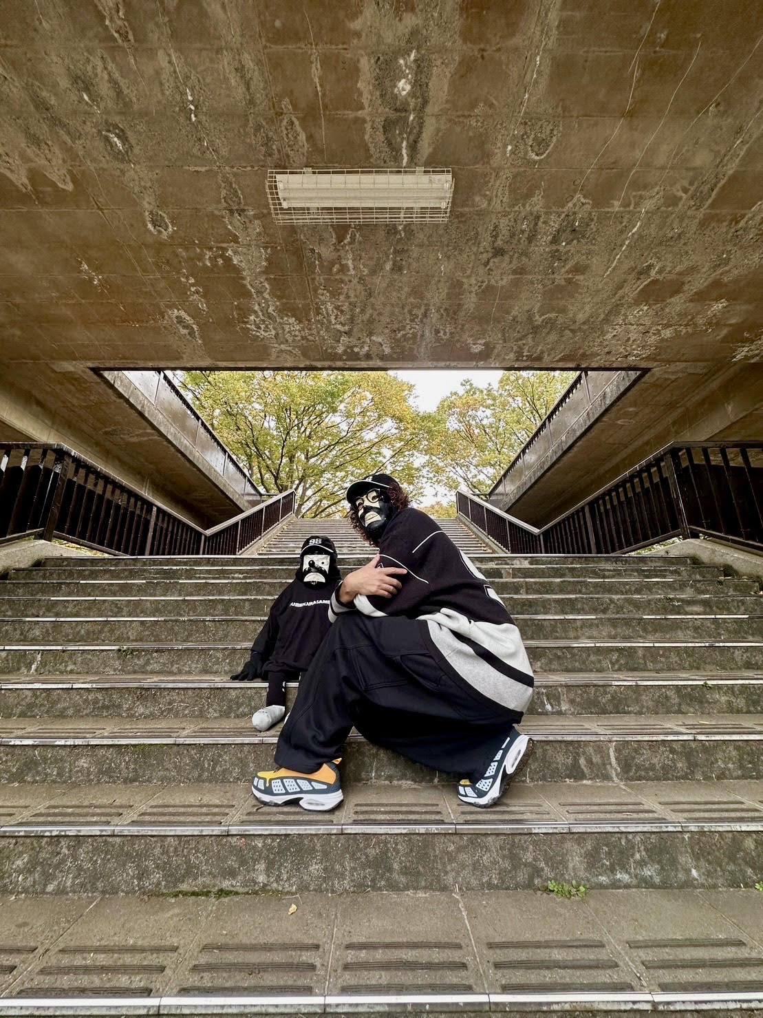 同コレクションは、1998年の東京・代々木公園「HIPHOP最高会議」にて出会い、四半世紀が経過した現在も活動を続ける両者が、パスト & フューチャーをパックしたもの。ホッケーシャツ・シェイプのニット、両者を象徴するワード“YUMEKARASAMETENAI”をフィーチャーしたTシャツ(2カラー)や、キャップ、ソックスがラインナップしています。