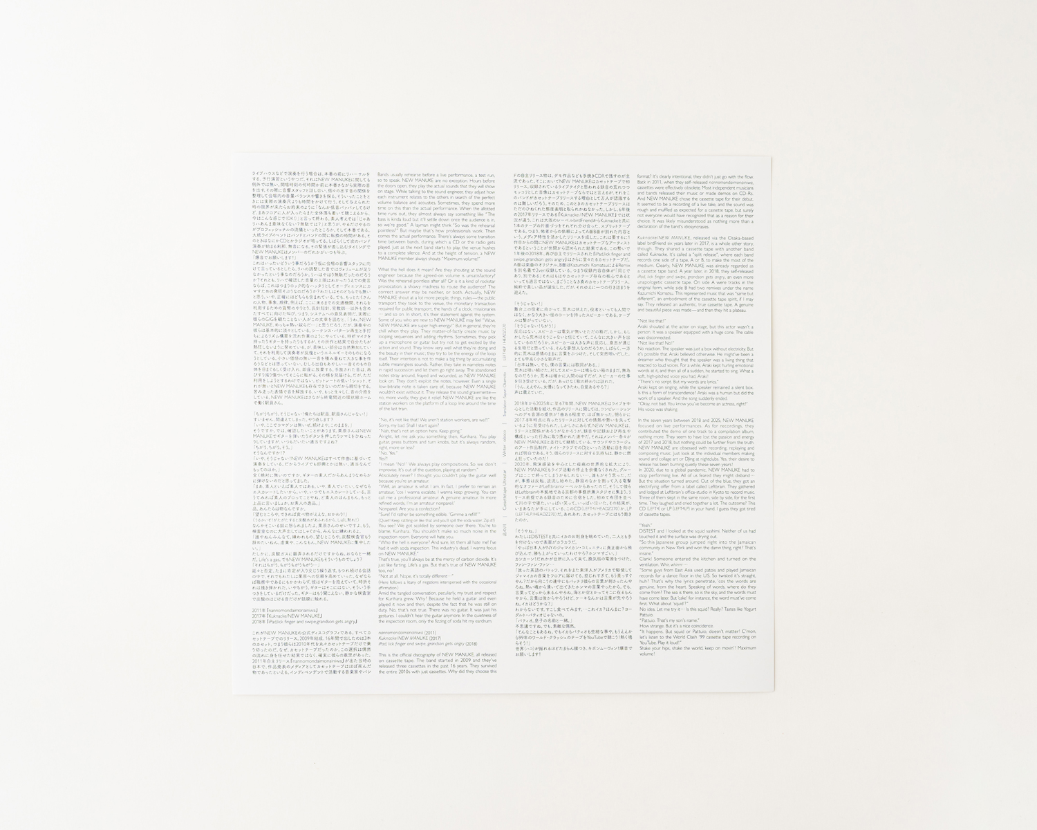 K 「(器楽奏者ではない非音楽家の)2人とグループとして腹を探りながら作曲したり録音したりっていうのは、普通のバンドと違うアプローチを常に考え続けざるを得ないわけで。だからNEW MANUKEの活動を継続すること、それ自体が即興演奏的な感覚の中にある」