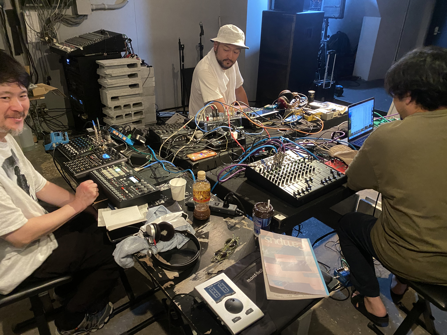 A 「近年は全員住んでいるところがバラバラの三都物語状態なんで、物理的にそうそう3人で集まれなくて。基本的に音を出すのは京都の僕の作業場やから、ペダルくんが関西に帰ってきたタイミングで集まるとなると、神戸のディっさんはそれに合わせるのもなかなか大変やろうし」