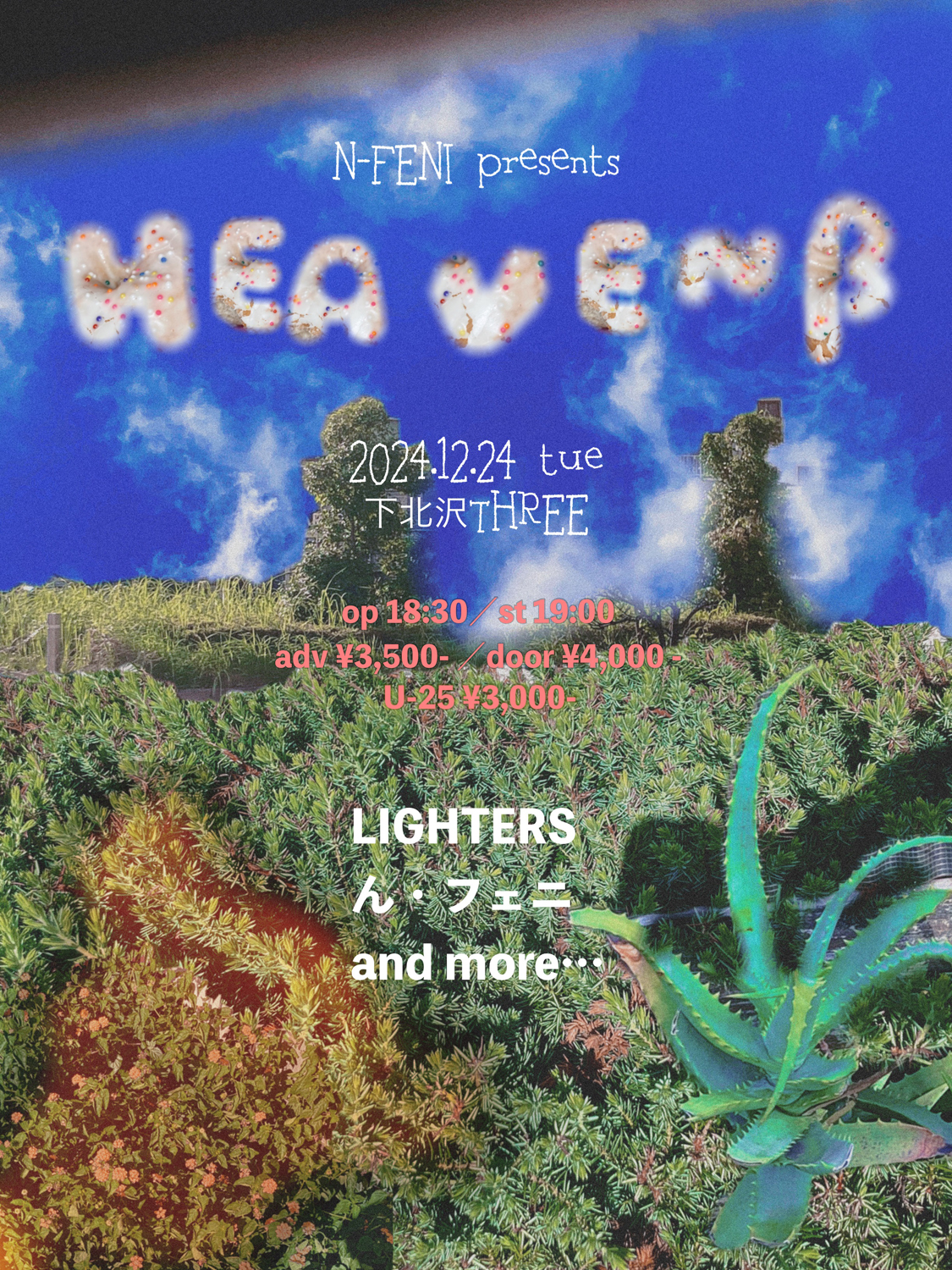 また12月24日(火)には、自主企画「HEAVEN β」を東京・下北沢 THREEにて開催。ん・フェニに加え、今年は2タイトルのシングル『meanwhile』『american no koibito』を発表しているLIGHTERSの出演が発表されています。最終的には3マンでの公演を予定。予約はフォームにて受付中。