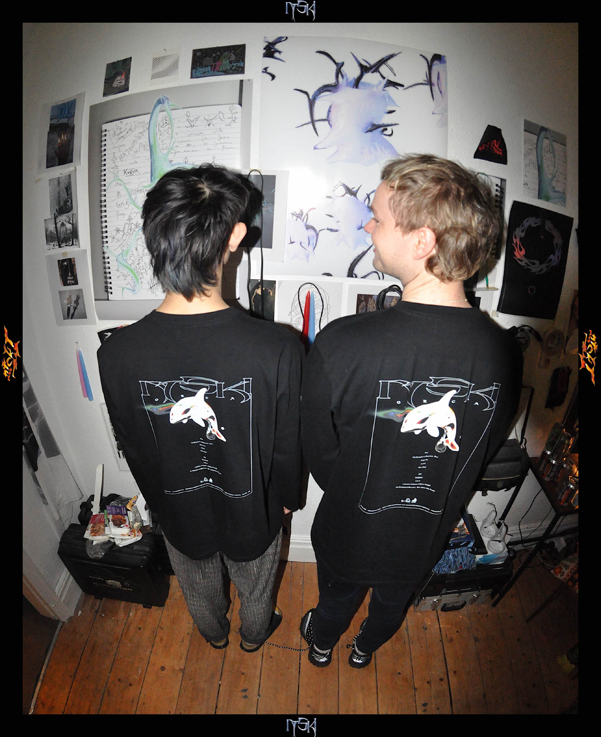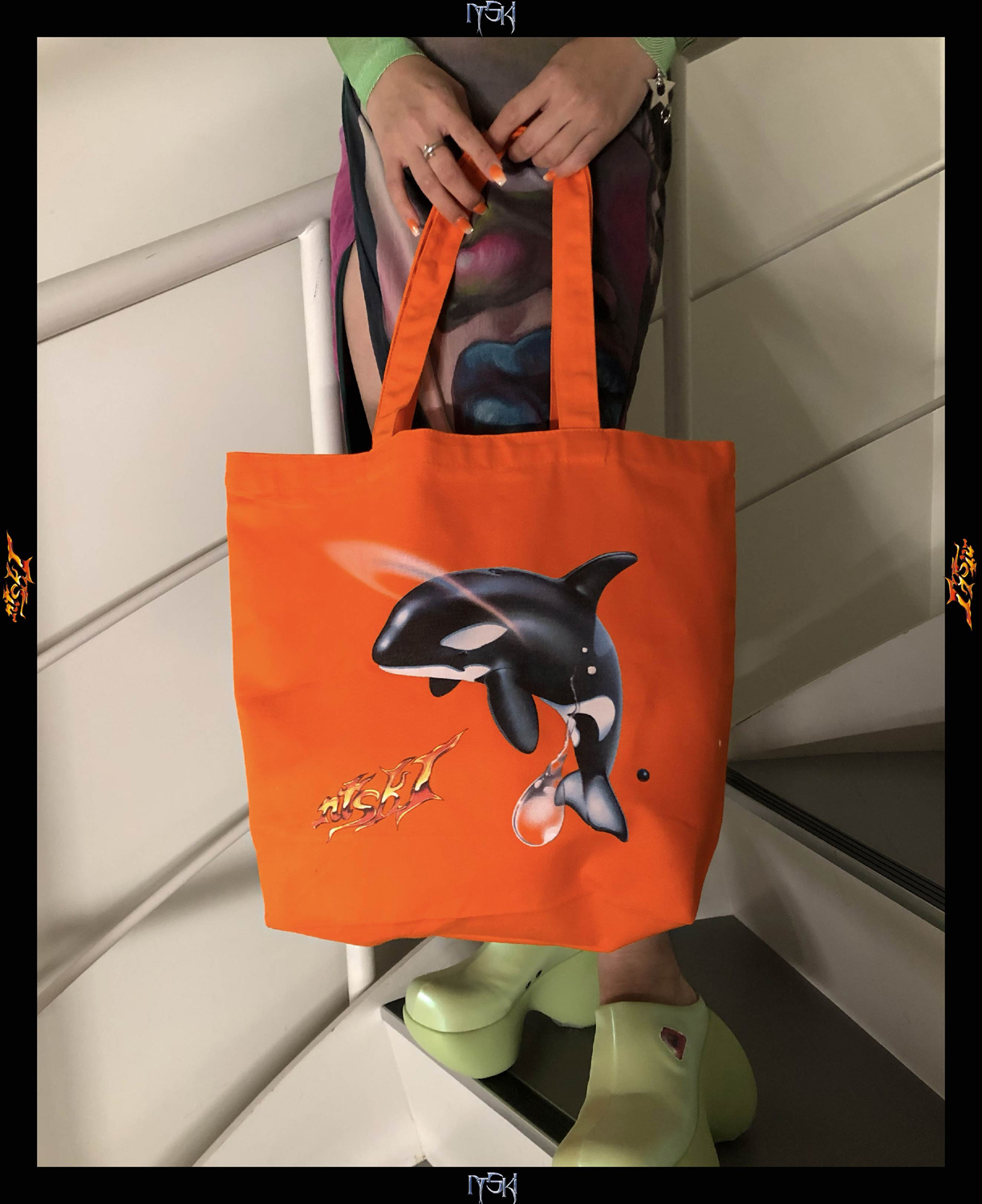 Keith Rankin aka Giant Claw(Orange Milk Records)が手がけたアートワークをモチーフにしたアイテムは、ロングスリーヴTシャツとトートバッグの2種。ロングスリーヴTシャツはフロントにNTsKiロゴ、バックにアルバムのバック・カヴァー、スリーヴにシャチの意匠をあしらったもの。スリーヴのシャチは、『Orca』カヴァー・アートのNTsKiと同じ位置にデザインされています。オレンジのトートには、シャチとロゴをプリント。