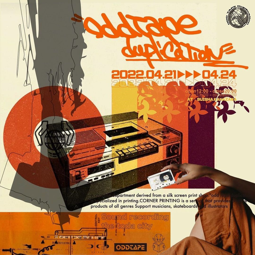 プリンティング・カンパニー「CORNER PRINTING」のカセットテープ製造部門としてのみならず、レーベル / ショップとしても注目を浴びる「ODD TAPE DUPLICATION」と、厳選した各国のジンや書籍を取り扱う同社運営のショップ「CORNER BOOKS」が、ダイナーを併設する石川・金沢のオルタネイティヴ・スペース「SUISHA」にてポップアップ「ODD TAPE DUPLICATION / CORNER BOOKS Exhibition」を4月21日(木)から24日(日)まで開催。