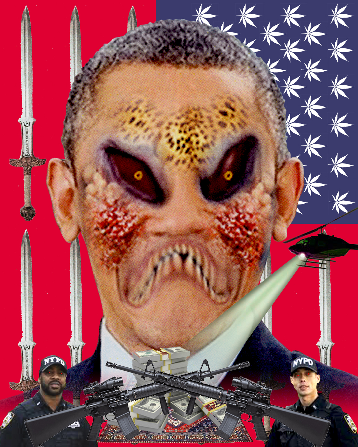 「例えばPaleduskのために描いたゴブリンの絵は、なんかめちゃくちゃ褒められるんですよ。いや、このゴブリンは去年の年末年始に搾り出すようにして描いた、難産の末にできあがったものなので思い入れはものすごくあるんです。でも、イラストに関してはまだプロと名乗れるほど場数も踏んでいないし、自信もないので、褒めてもらえるんだったらオバマとかモヒカンのコラージュのほうが……」