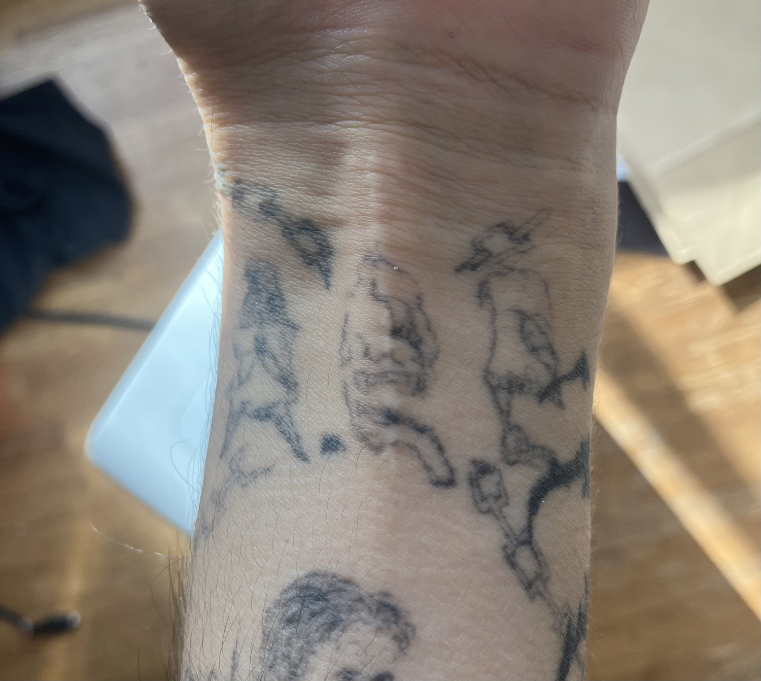 「そう、まだ20代前半とかで。そのItsukiに、初めて左手首の内側に“A.C.C”と彫ってもらったんです。もともと僕の左手首にはリストカットの跡みたいな縦線が入っているんですけど、これはリスカじゃなくて手術の跡で。しかも縦のリスカって、ガチ系なんですよ。逆に、横に刃を入れる人は本気で死ぬ気はないみたいな。要は、ガチ系のリスカ跡があると思われるのが恥ずかしくて、それを目立たなくするためにタトゥで覆ったという」