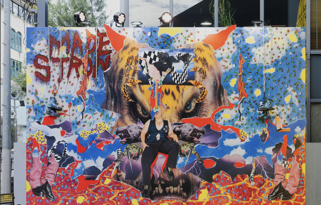 「Dr. Martensの仕事は大きな自信になりましたね。縦5m、横7mのコラージュを作ったんですけど、これはよく見ると一枚絵じゃなくて。各パーツを釘打ちで留めて、壁面上で組み立てた本当のコラージュになっているんですよ。そもそもこのサイズのコラージュを作った人もなかなかいないと思うし、Dr. Martensは有名ブランドなので権利関係も厳しくて。ネットで適当に拾ってきた画像とかを使うわけにはいかないから、必要な画像は有料のストック素材サイトから買っていいと言われたんです。それも経費扱いになるからと。そういうサイトの画像を使っても、自分で納得がいくものを作れるんだという自信もつきました」