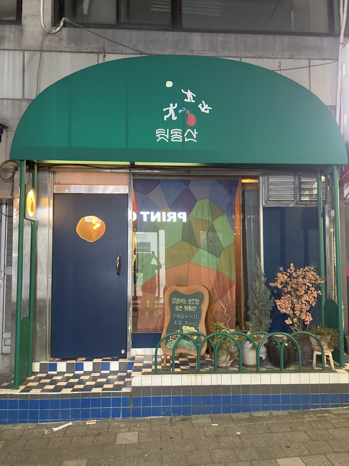 荷物を置いて、早速外出。まず行きたかったのが「空間ティットンサン(공간 뒷동산)」というレストラン。2020年にオープンしたお店。入ると店員のかたがDJしながら注文を取っている。予約せずふらりと来てしまったのだが、カウンターの席を案内してもらった。モダンジャズ期の渡辺貞夫がかかっていて素敵である。