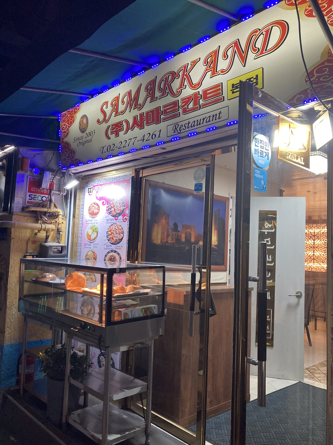 夜になって腹が減ってきたので外出し、今回行きたかったウズベキスタン料理の店に。東大門には中央アジアから来た人たちのコミュニティがあり、通りの一角に彼らが集う店が立ち並んでいる。朝の早い時間には中央アジアの食品などを売る小さな市場も開かれていて、以前から気になっていたのだった。