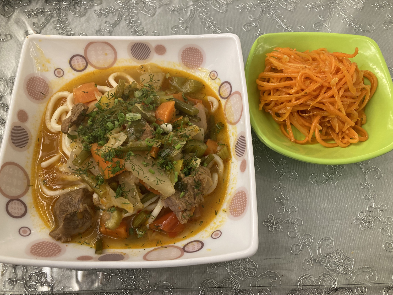中でも代表的な店「サマルカンド」に入ると一気に風景が変わり、お客さんも中央アジアの人ばかりである。僕の目当ては「ラグマン」。ウズベキスタンなどで食べられている、うどんのような料理である。ほんのりとクミンの香りがするトマトスープで、セロリ、玉ねぎ、ピーマンなどと一緒に、ボソッとした食感のうどんのような麺が入っている。卓上の塩で味を調整しつつ食べる。ビールも頼むと、付け合わせで人参を千切りにしたピクルスのような料理が出てきた。写真だといまいち大きさが伝わらないのだが、ひとりで食べるにはわりと多い。完食できるか不安だったが、ほどよい酸味でビールにぴったり。ガツガツ食べてしまった。その後、電車で梨泰院のクラブ「cakeshop」に移動し、少し飲んで帰宅。