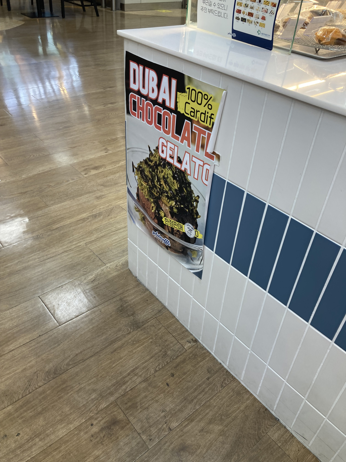 続いて、旅の土産を買おうと合井の「Home plus」に。お土産屋ではなく、大型スーパーである。まず、以前友達がおすすめしてくれた、近くのジェラート屋さんに入る。期間限定でドバイチョコレートのジェラートがあったのでそれにした。チョコレートアイスの中にピスタチオのペーストとカダイフが入っている。チョコの甘さにほどよい塩辛さが混ざってノックアウトされた。本来のドバイチョコレートより先にジェラートを食べてしまったのだが、日本だと今のところなかなか手に入らない。韓国だといろんなお店で売っているのでお土産で買ってくればよかった……。「Home plus」では韓国のインスタント・ラーメンなどを購入。日本のスーパーと違って袋麺はバラ売りではなく5個セットなどで売っているため、持ち帰るにはかさばる。スーツケースに入るか若干不安だったがとにかく買いまくった。