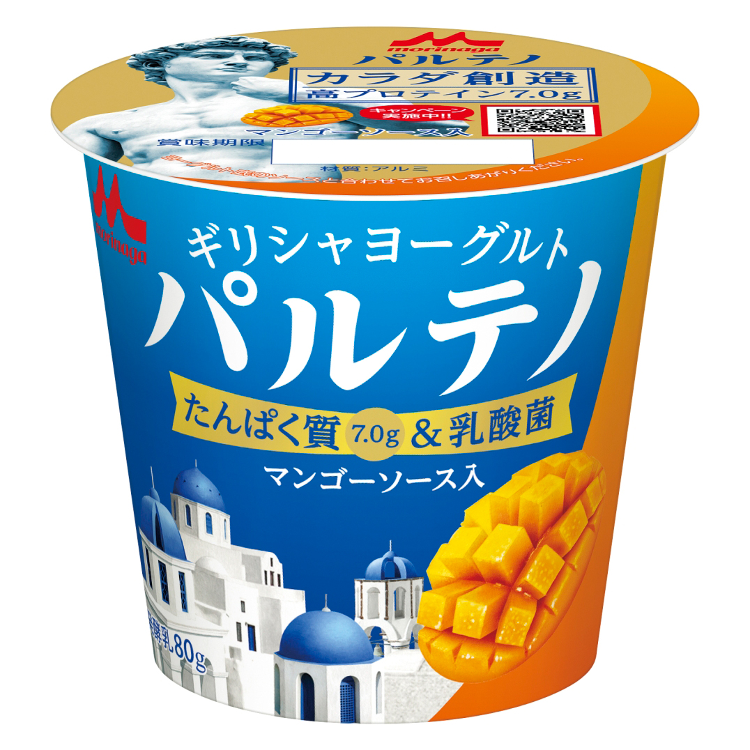 ギリシャ・ヨーグルト伝統の製法“水切り”を導入し、独特の濃厚な口あたりと豊富な栄養価を実現した森永乳業のヨーグルト・ブランド『ギリシャヨーグルト パルテノ』が、マンゴー・ソース・インの新商品『ギリシャヨーグルト パルテノ マンゴーソース入』(80g | 146円 + 税)を4月21日(火)に発売。