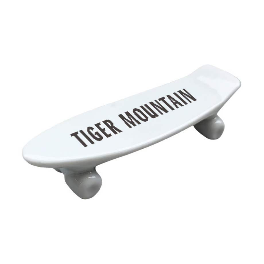 2015年のローンチから今年で10年目を迎えた「PEOPLEAP」のアーカイヴと新企画を兼ねた同イベントでは、TIGER MOUNTAINのロゴやイラストをあしらった7"プレートと箸置きを販売。7"皿は、裏面のQRコードからTwoth(PEOPLEAP)、若林 恵(黒鳥社 | TIGER MOUNTAIN)によるプレイリストのストリーミングが可能です。
