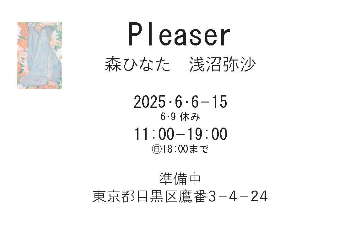 絵画、写真、セラミックの表現形態で知られる浅沼弥沙と、北海道出身の画家・森ひなたが、二人展「Pleaser」を6月6日(金)から15日(日)まで東京・学芸大学 準備中にて開催。