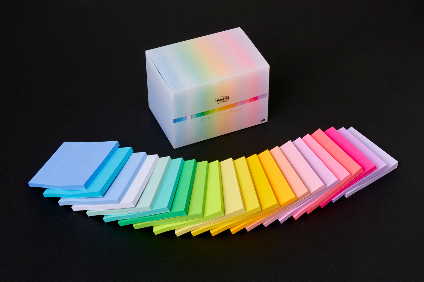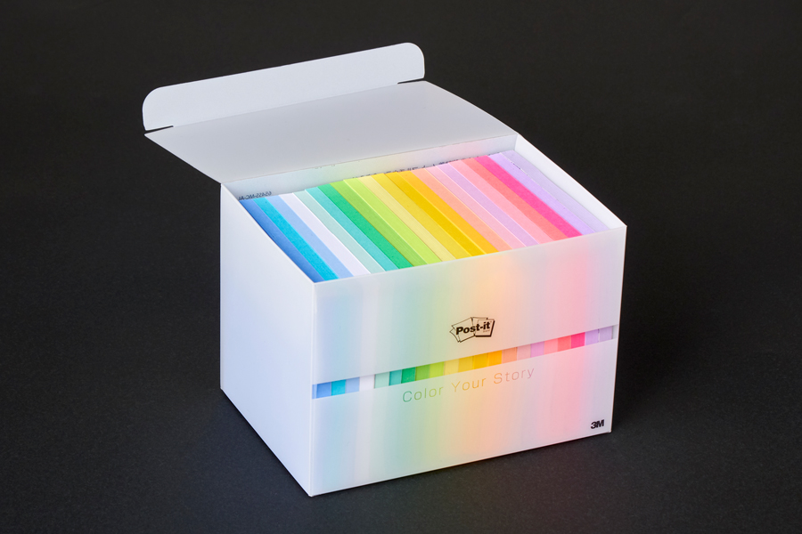 40周年限定製品として発売される『ポスト・イット® 強粘着ふせん マルチカラー スペシャルセット』は、昨年7月に新色8色が加わって全21色となった『ポスト・イット® 強粘着見出し ふせん ノート マルチカラー『シリーズがラインナップする8通りの組み合わせを全てコンパイルしたもの。『ポスト・イット® 強粘着ノート マルチカラー 全色入り』は、全21色のグラデーションを目で楽しめるトランスルーセントの特製ケース入りです。