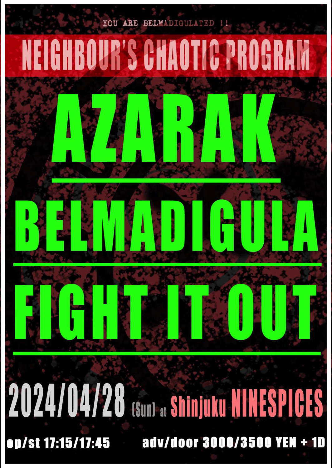 ――そして、第3回となる「Neighbour's Chaotic Program」はAZARAK、FIGHT IT OUT、BELMADIGULAの3マンという。