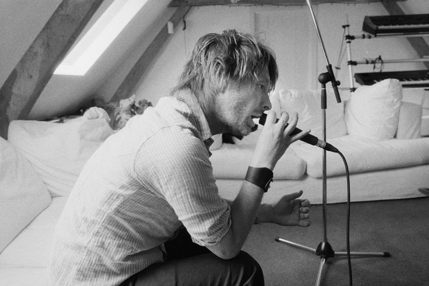 ステージ上、舞台裏、リハーサルルーム、ツアー中の様子、仕事やプライベートまでもをとらえたコリン撮影の写真と、それに紐づく物語や記憶は、「喜びと疑い、自信と不確実性の間で常に揺れ動いていた」というバンド活動中期における、日常的なレディオヘッドの様子が垣間見えるポートレートとなっています。「ここ数年、私はレディオヘッドを隠し撮りしています。私の小さな黒いYashica T4 Superで友人たちを記録し続けています。ステージやリハーサルスタジオでは、彼らはパフォーマンスに没頭していて、私がカメラを持っていることには気が付きません」