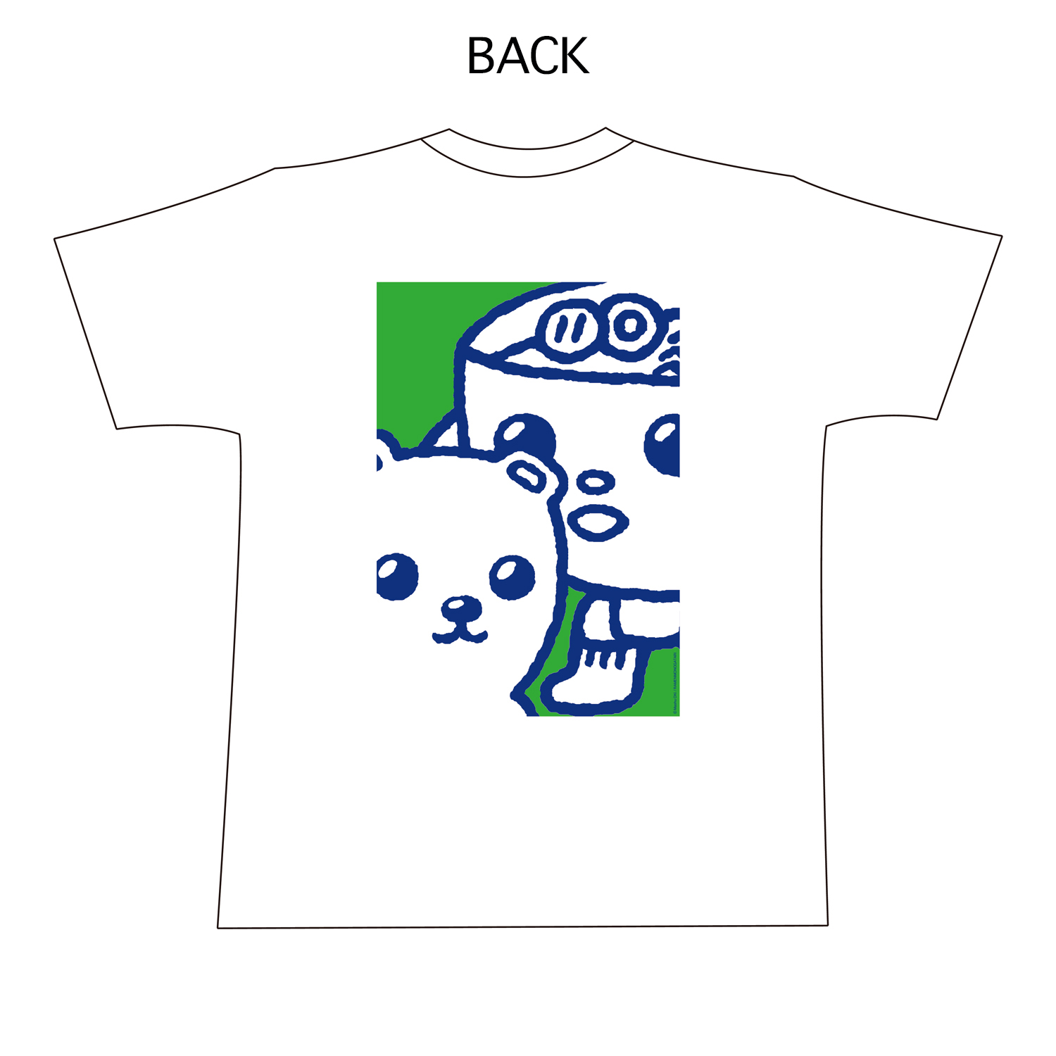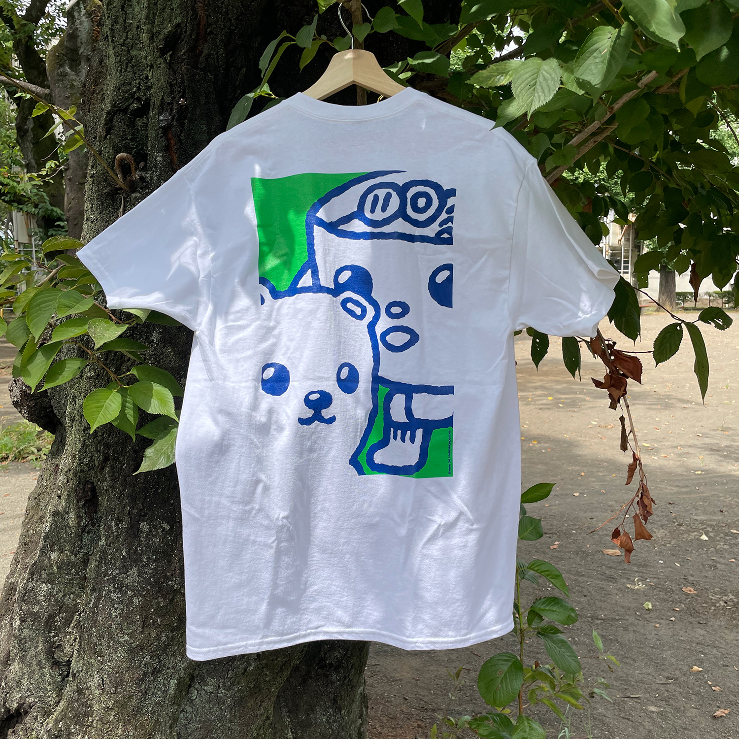 沖 真秀による初の漫画作品『ラーメン物語 第1巻』に登場する主人公“ラーメン”と小さなクマ“コブラ”のイラストをあしらったTシャツです。