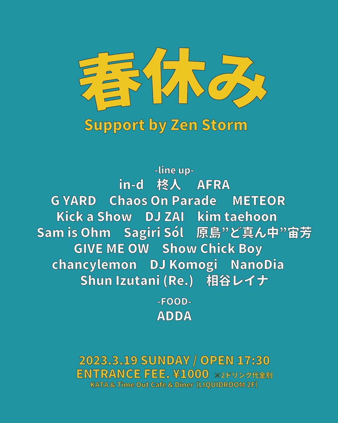 入場料 1,000円(税込 / 別途2ドリンク代)